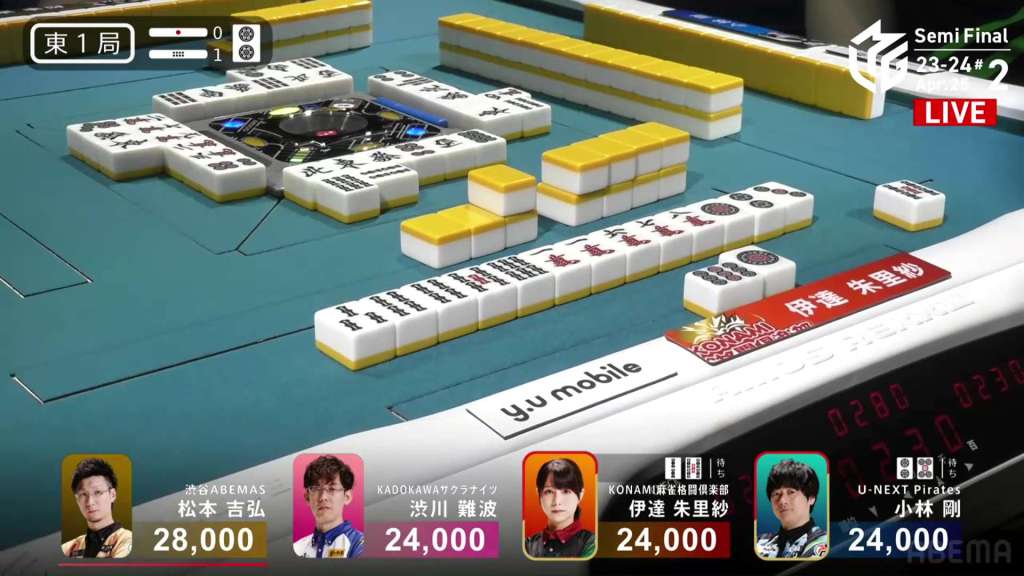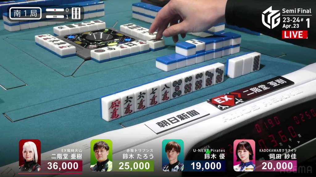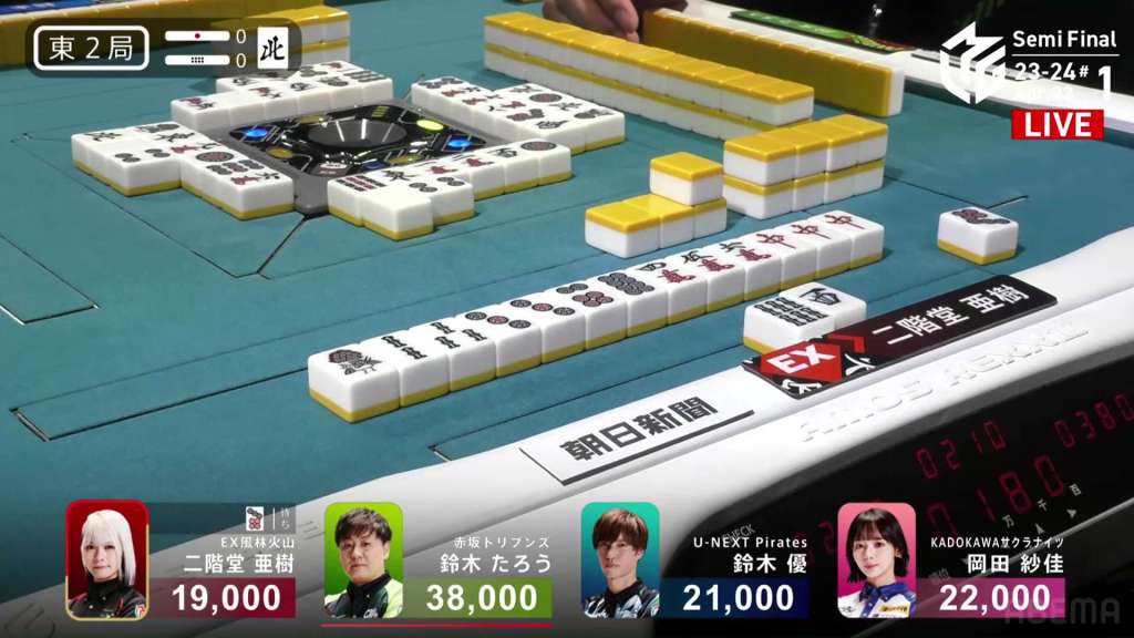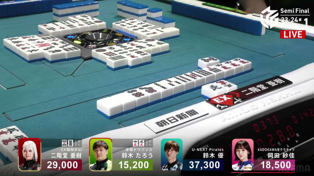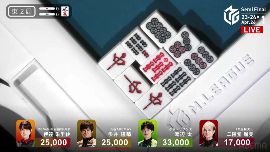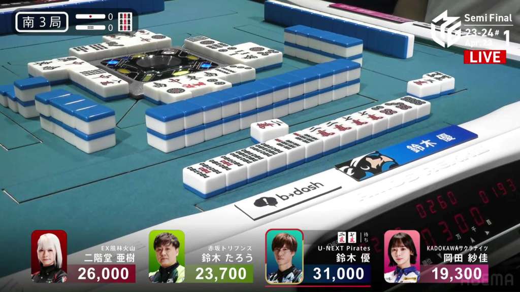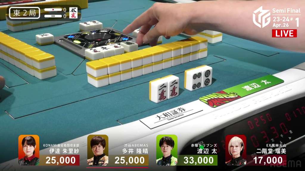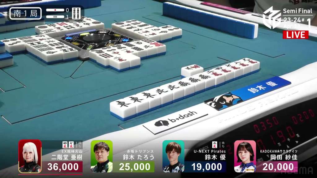 In S2-1, Hori is in 1st place and holding a 10,100 lead over 2nd place dealer Mizuhara.