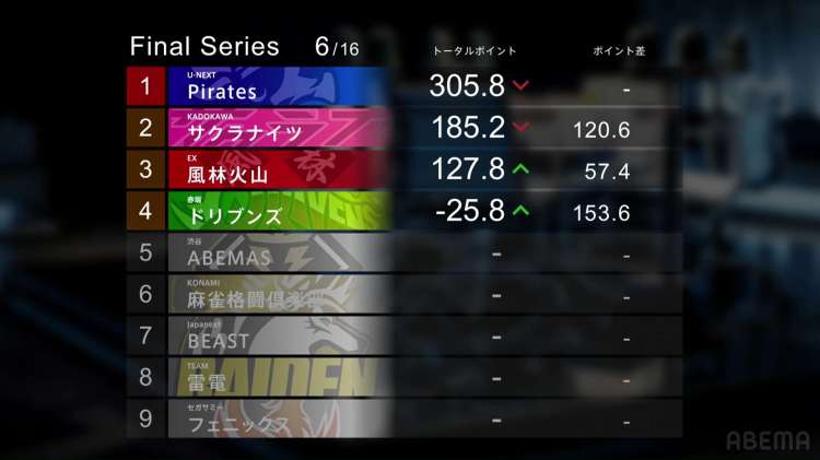 The Kadokawa Sakura Knights have passed the EX Furinkazan and are just one good day away from 1st place. The Drivens are also improving, being a 1st away from returning to the positives.
