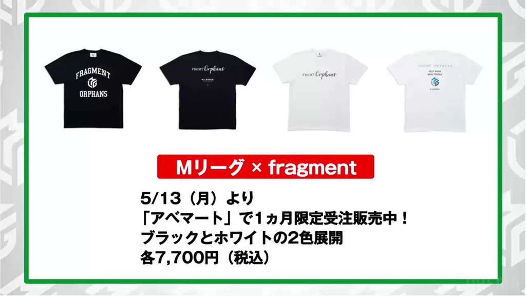 From May 13 to June 12 only, M-League will be collaborating with fashion company FRGMT. During the collab, M-League will be selling two different t-shirt designs that are only available on the online ABEMA Mart.