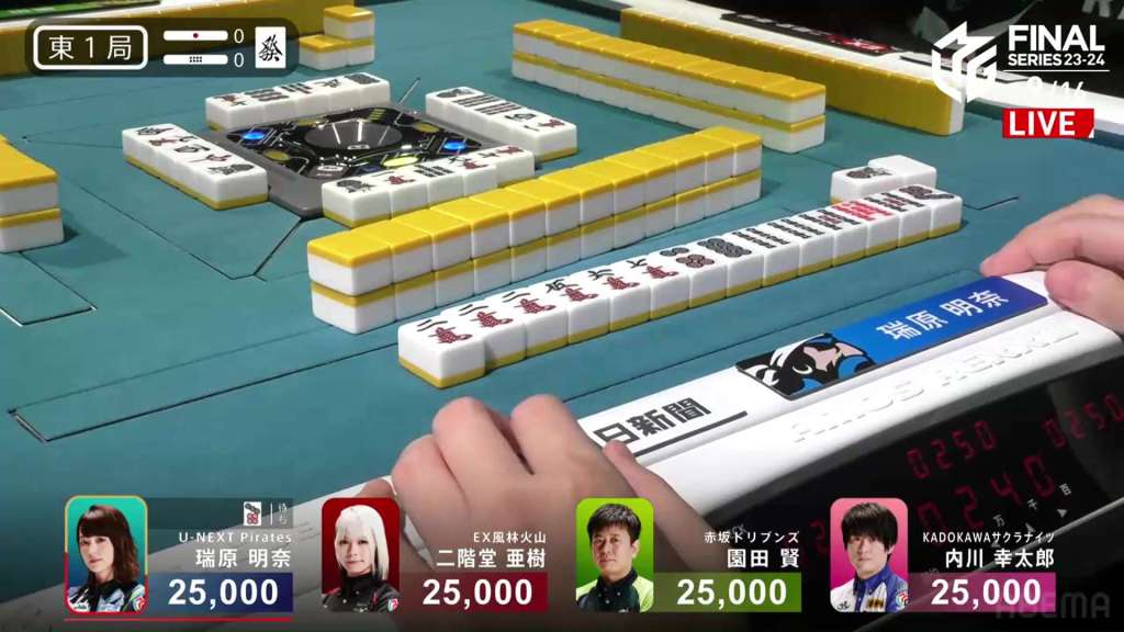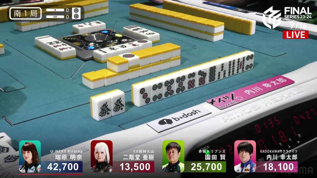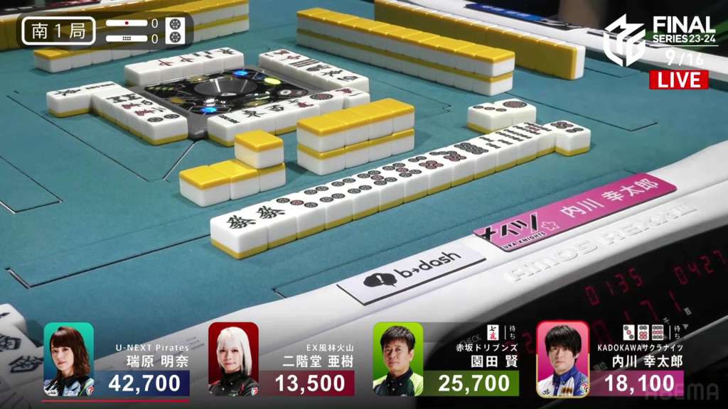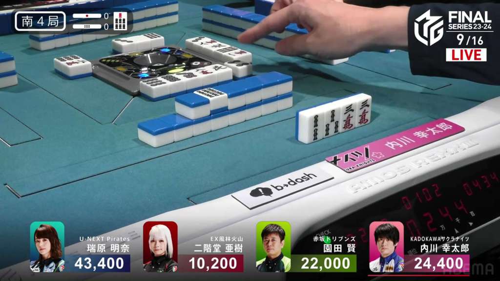 In S1-0, Uchikawa is in 3rd place, 7,600 behind 2nd place Sonoda. He made it out of 4th two hands ago and it’s time for the next step.