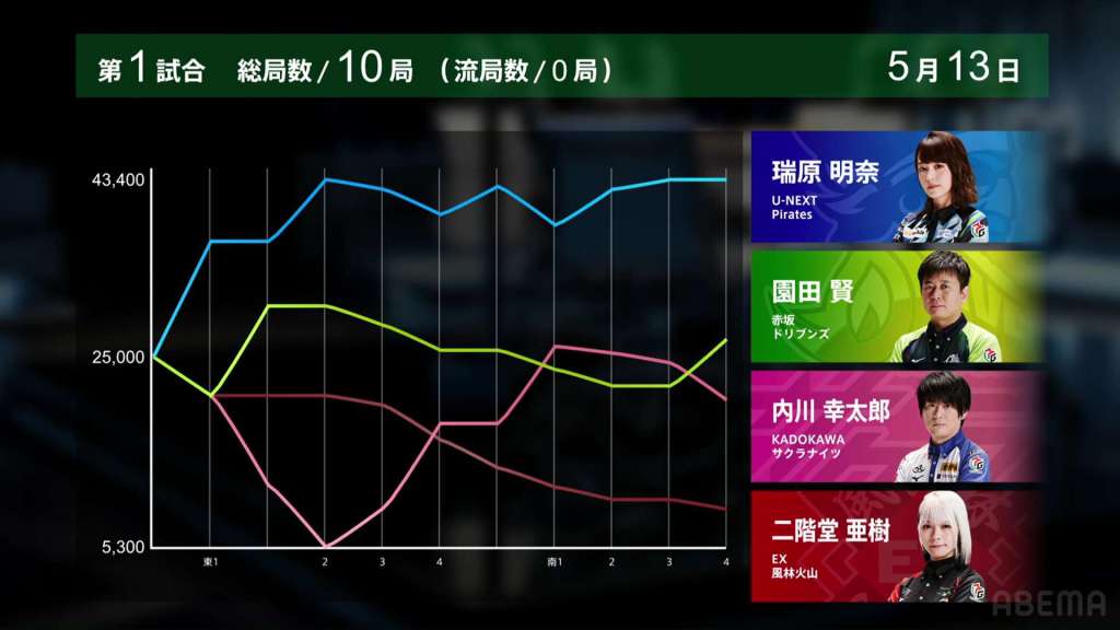 With Mizuhara getting 1st, Uchikawa getting 3rd and Aki getting 4th, the U-Next Pirates’ lead is maximized and grows even larger. They now have a 155.5pts lead over the 2nd place EX Furinkazan. With Sonoda sneaking into 2nd, the Akasaka Drivens are now getting a bit loser, just 109.1pts away from the 3rd place Kadokawa Sakura Knights.