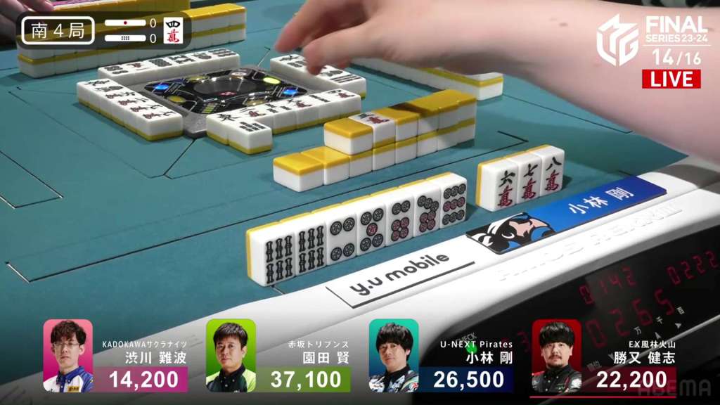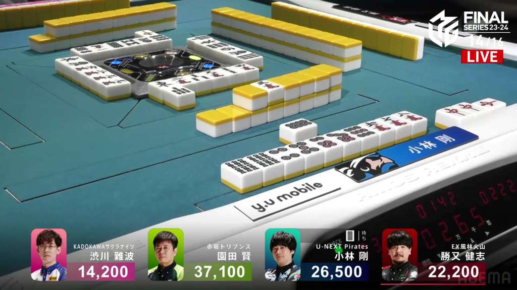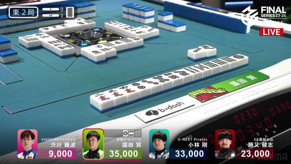 Kobayashi wins the hand with Red Dragon only for 1,000, successfully securing 1st for Sonoda and 2nd for Kobayashi.