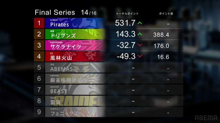 The U-Next Pirates hold a commanding lead over the 2nd place Akasaka Drivens. In order to for them to be beat, the other teams need to have some record-breaking performances. Twice.