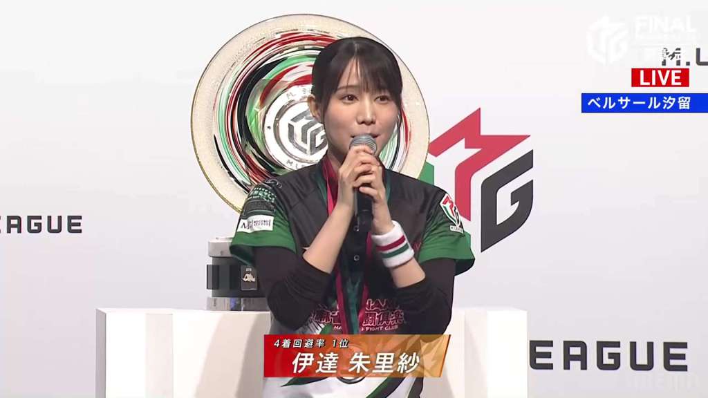 In 9th place, with a score of -625.1pts during the regular season, are the Sega Sammy Phoenix. First, she congratulated the U-Next Pirates on winning the championship. With some tears, thanked the fans for their support.