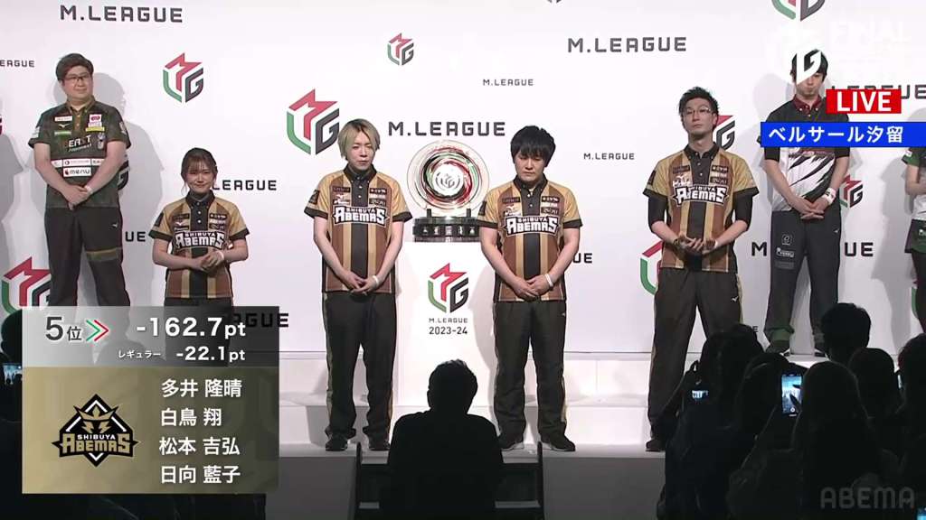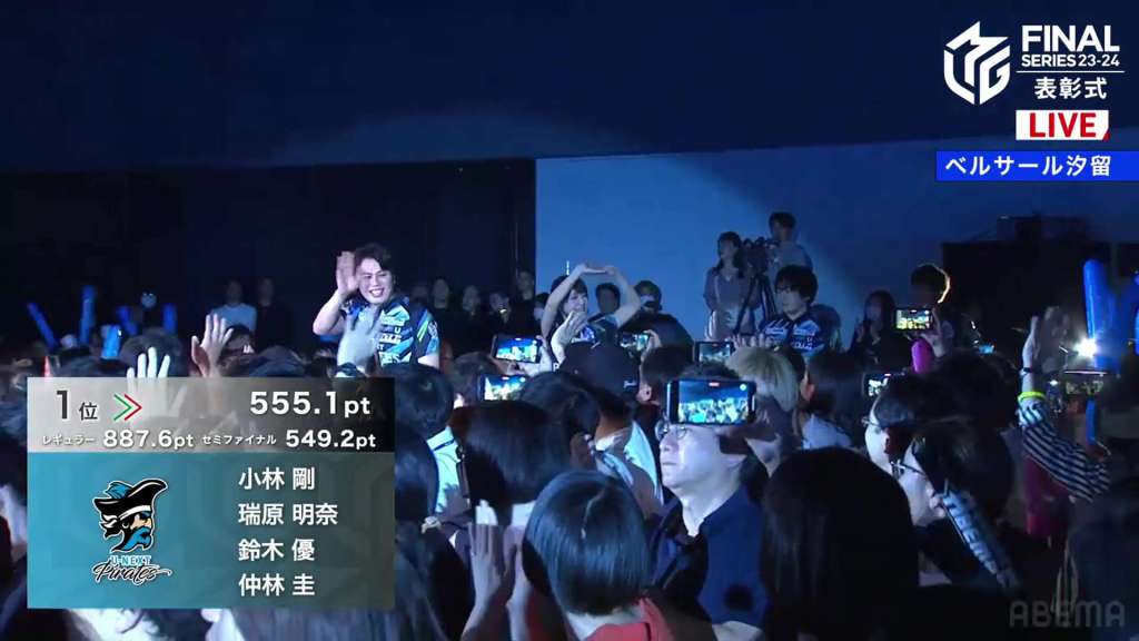 In 5th place, with a score of -22.1pts during the regular season and -162.7pts in the semifinals, are the Shibuya Abemas. In Ooi’s speech, he congratulated the Pirates. After that, he jokingly said that he won’t be able to do better than Sarukawa’s speech. He told fans that he won’t be going anywhere and that the four of them will work hard next season.