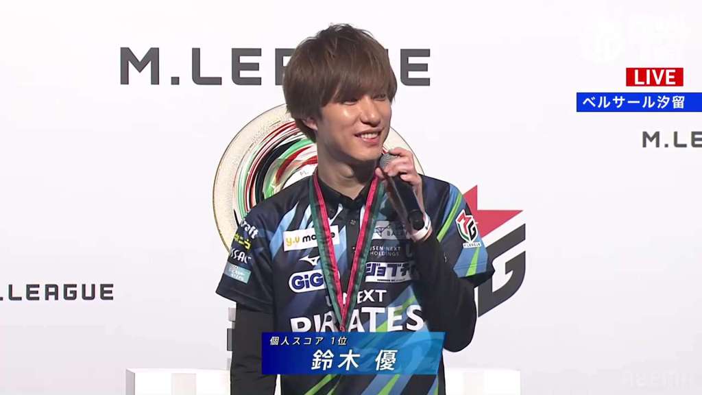 Beating the M-League record by 100, Taro went onto the stage and was awarded her medal. In Taro’s speech, he said that he will be aiming for the little plate medal, the MVP award, next season. As he walk off the stage, he showed off his medal to fans on all sides.