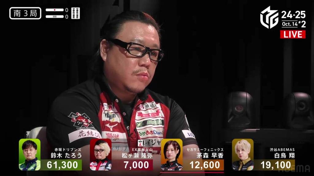 In E3-0, Futoshi is in 3rd place and the only player who hasn’t gotten a limit hand so far.