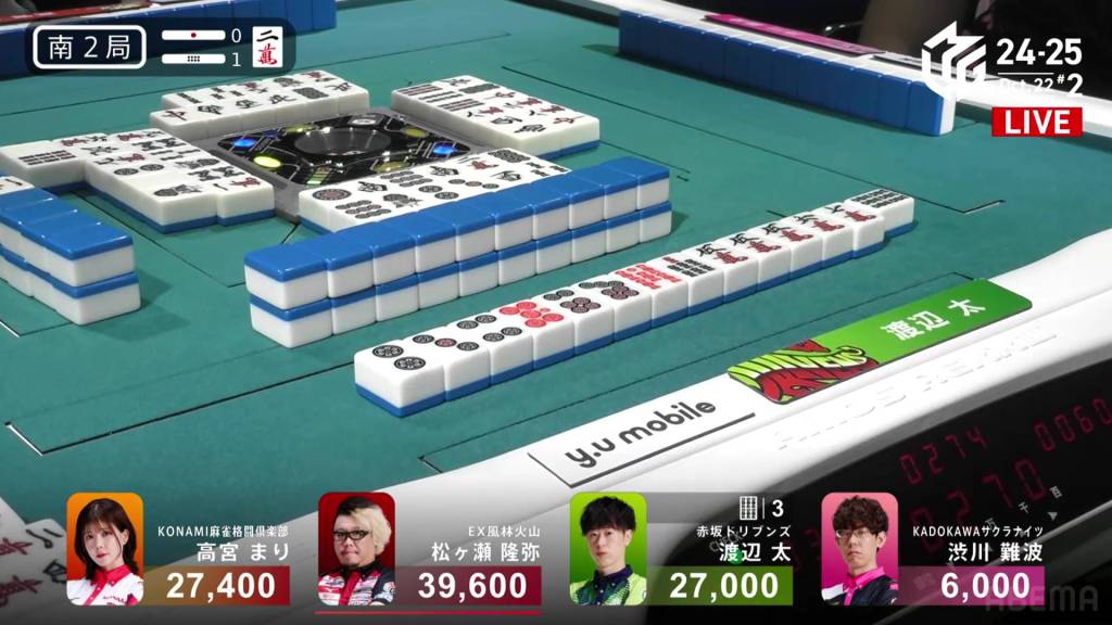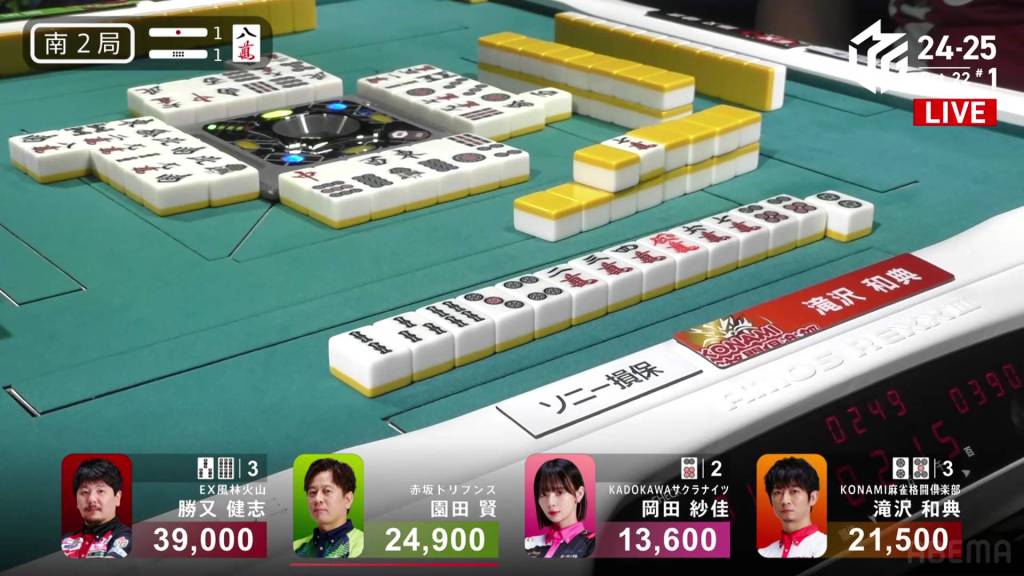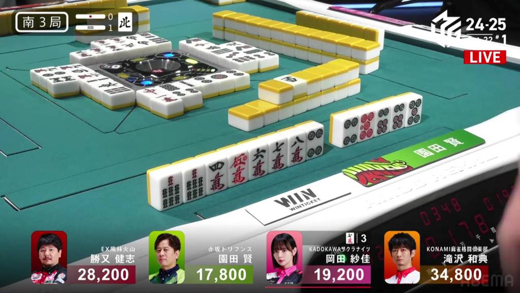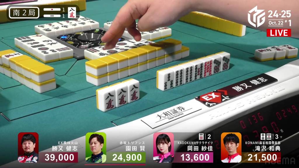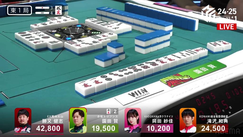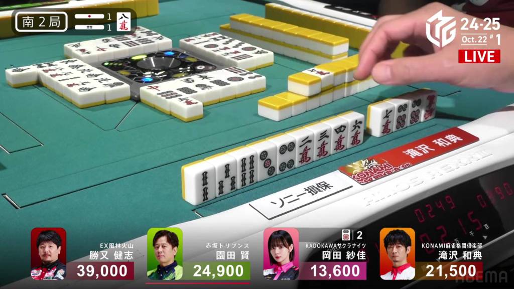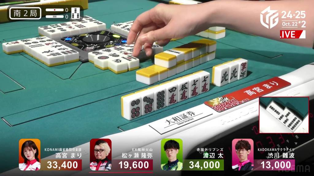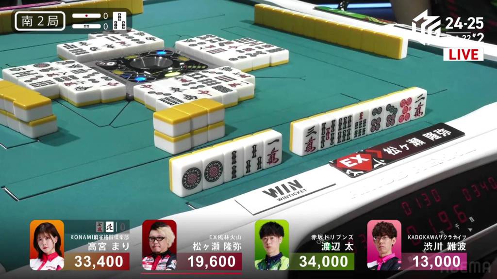 The hand finished so quickly that you could still hear the autotable shuffling when Katsumata called ron.