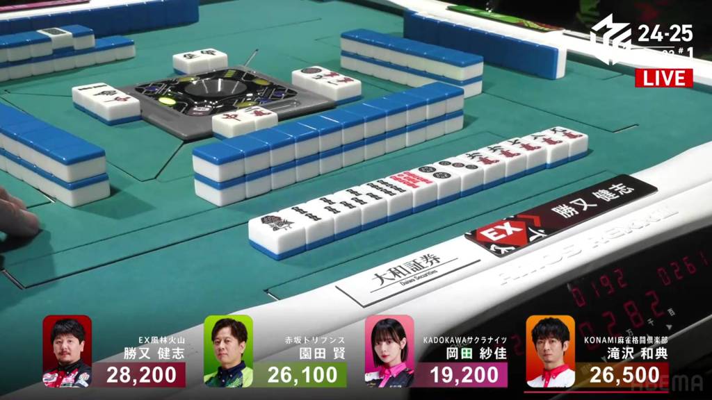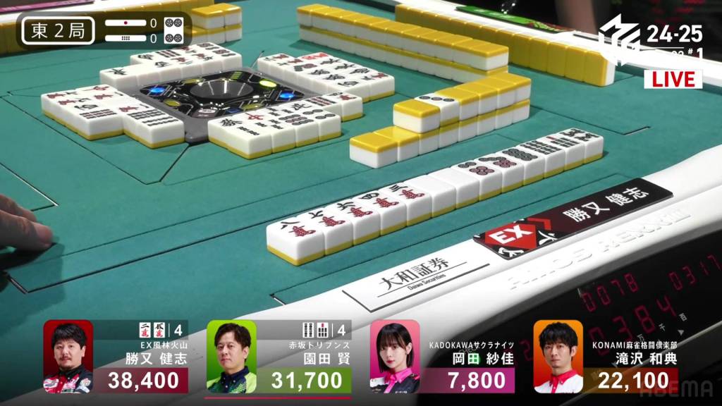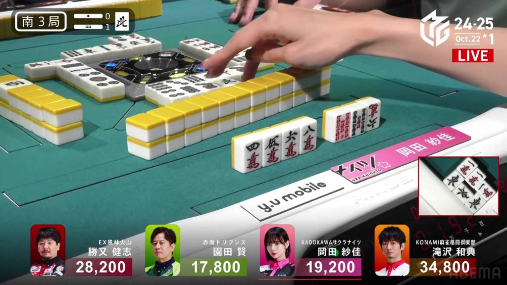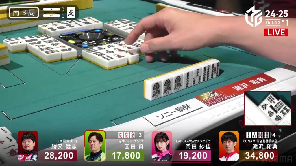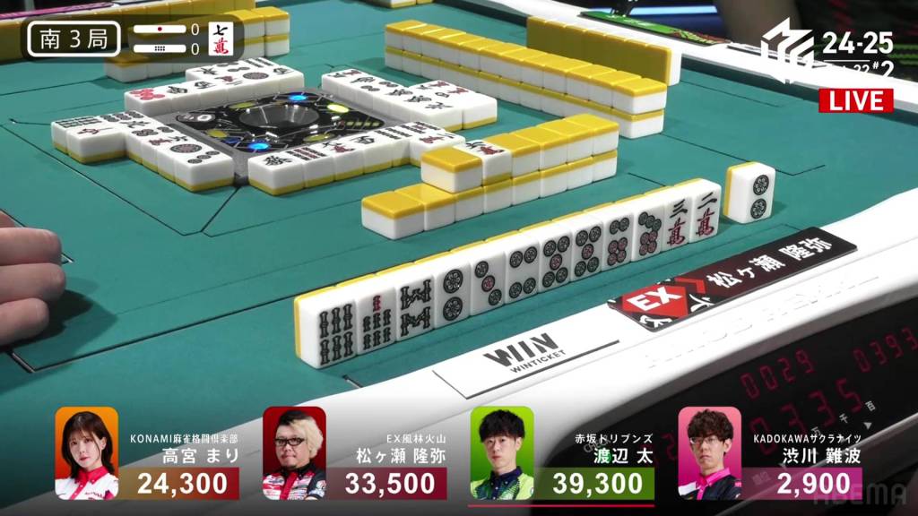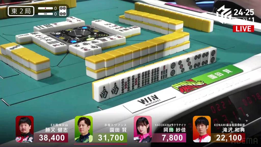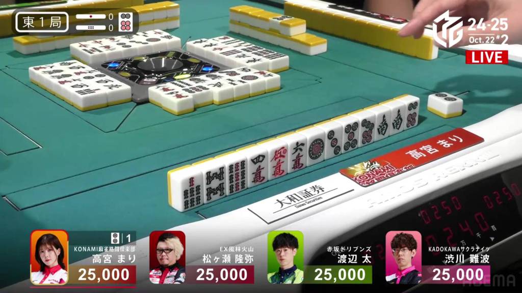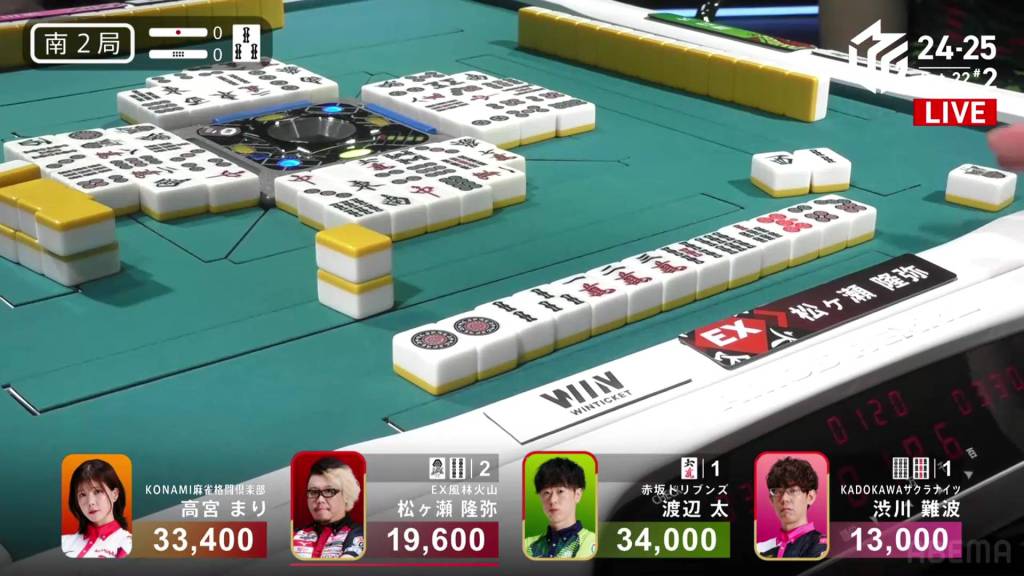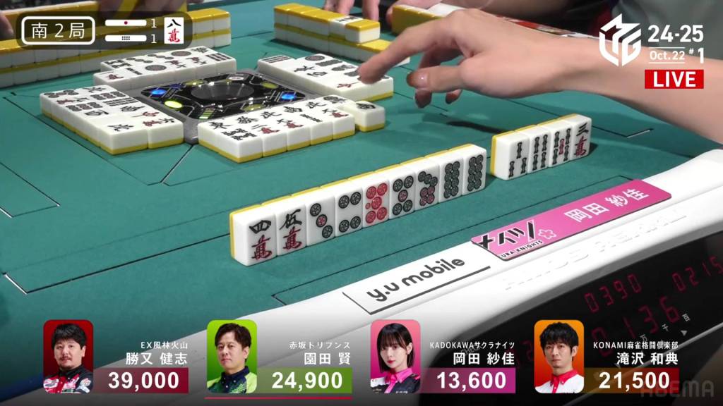 The hand finished so quickly that you could still hear the autotable shuffling when Katsumata called ron.