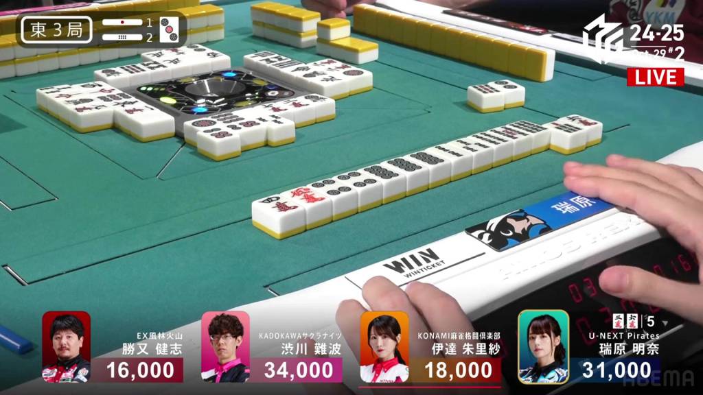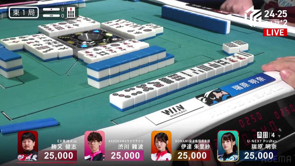 In E1-0, Mizuhara is in the starting north seat, trying to carry the momentum after Yu’s win in the first game.