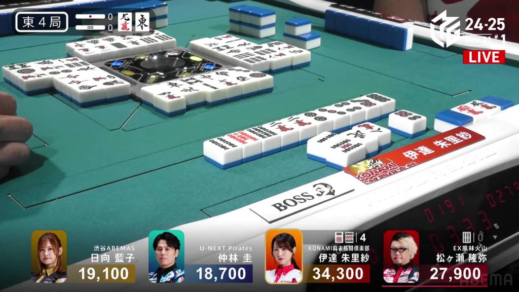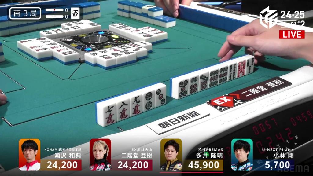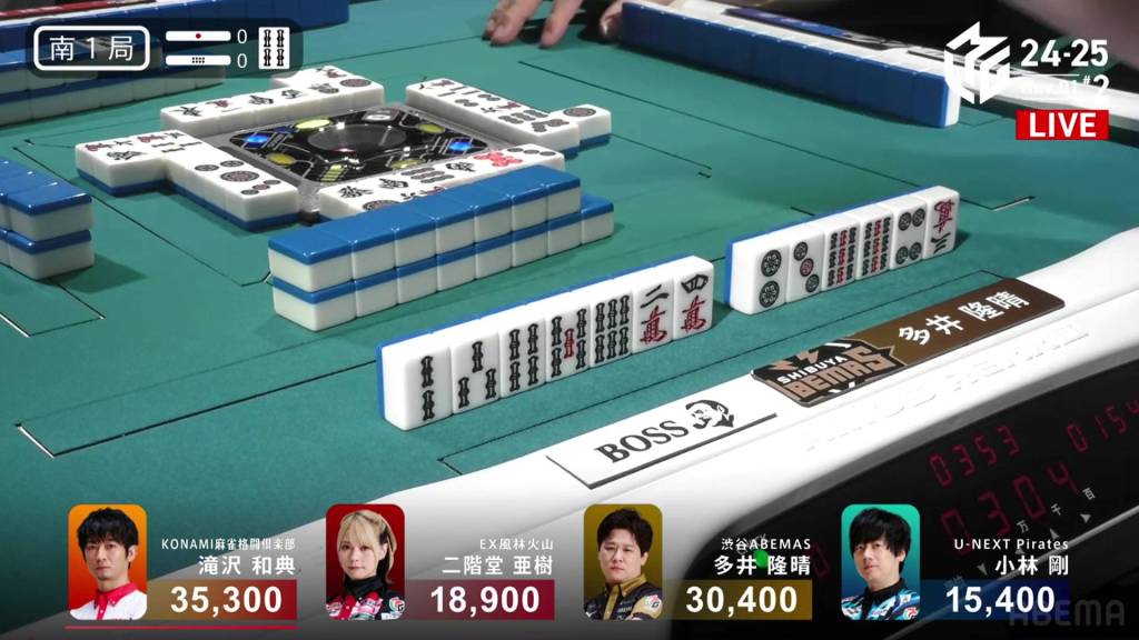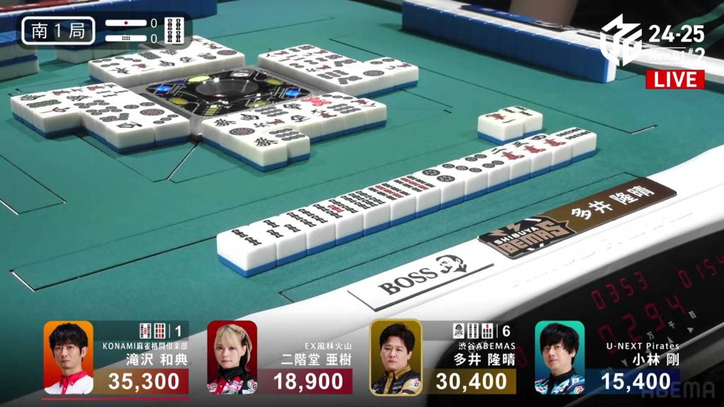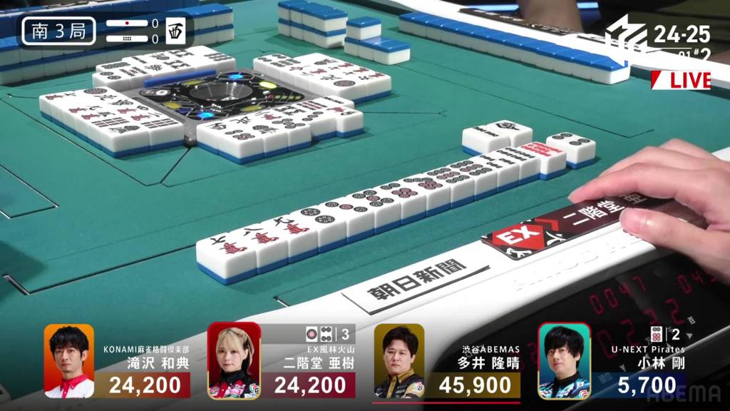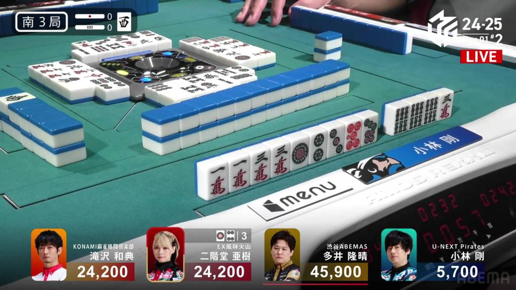 In S3-0, Aki and Takizawa are tied for 2nd place, both holding a score of 24,200. Whichever of the wins this hand will have the slight advantage going into all-last.