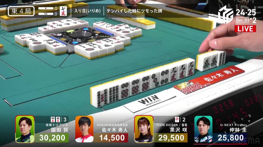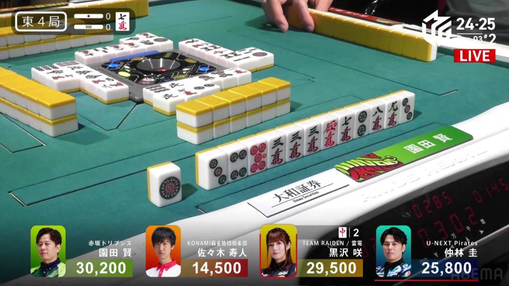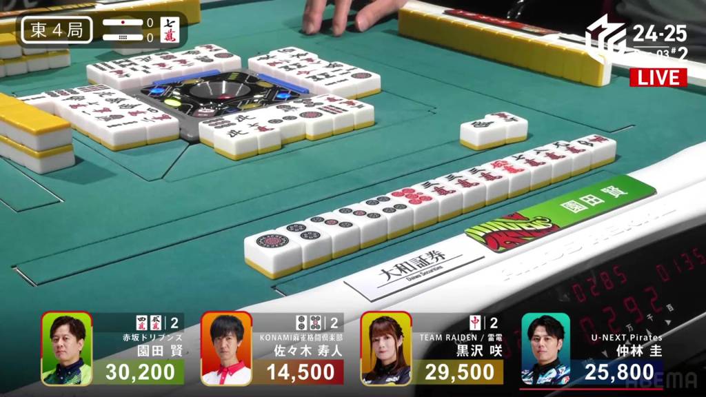 Immediately after, Nakabayashi draws the 7m. Taking no time, he simply discards it and deals into Kurosawa.