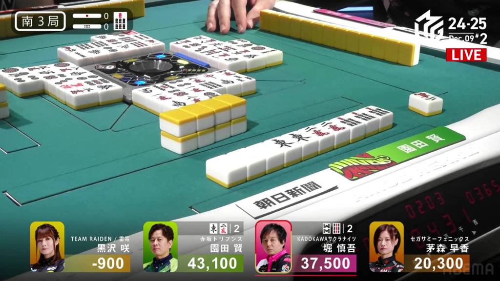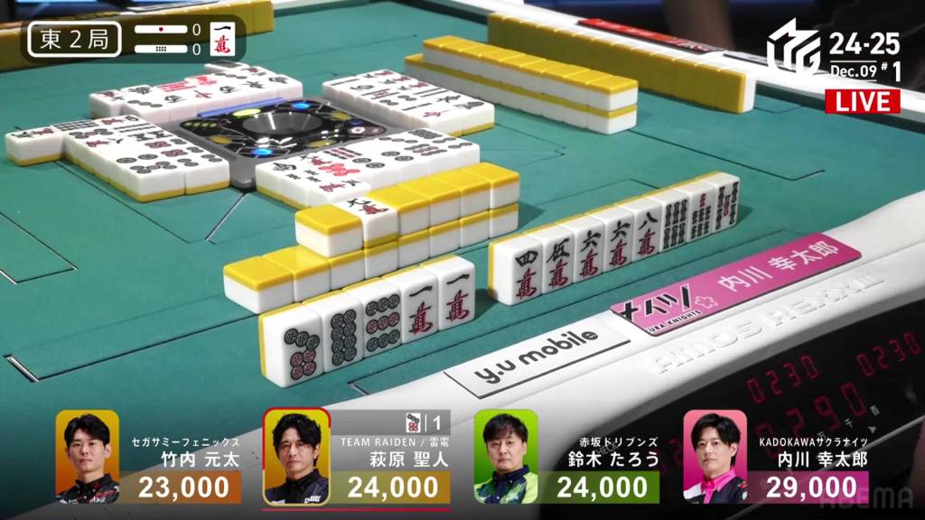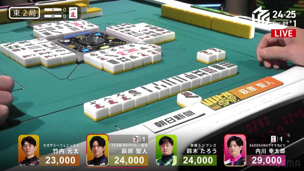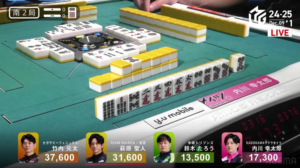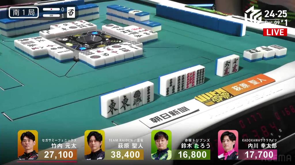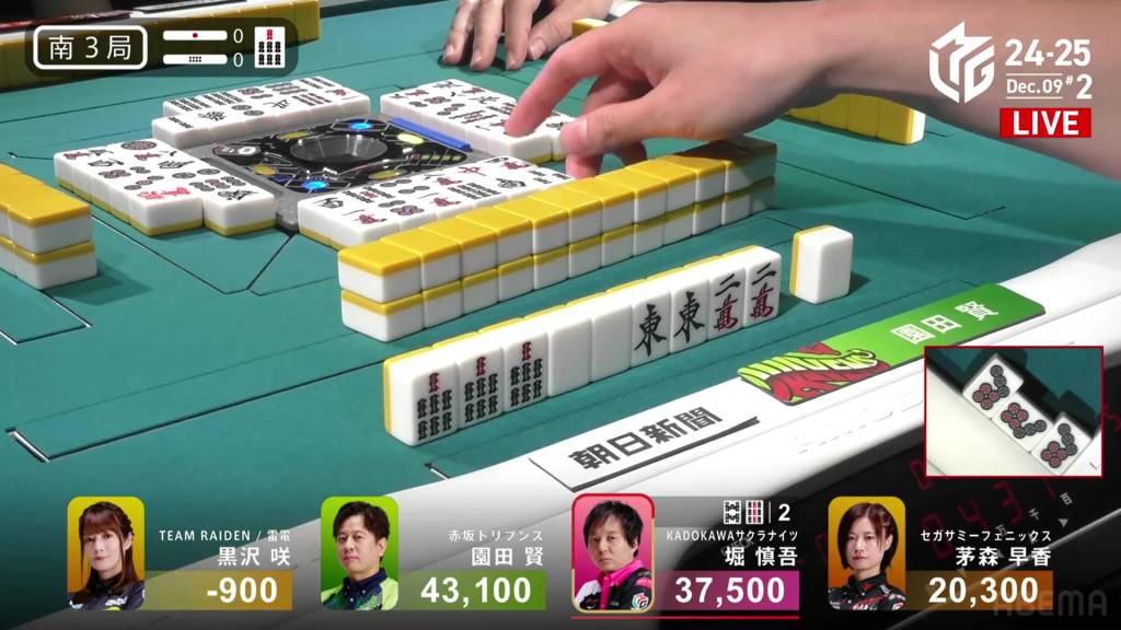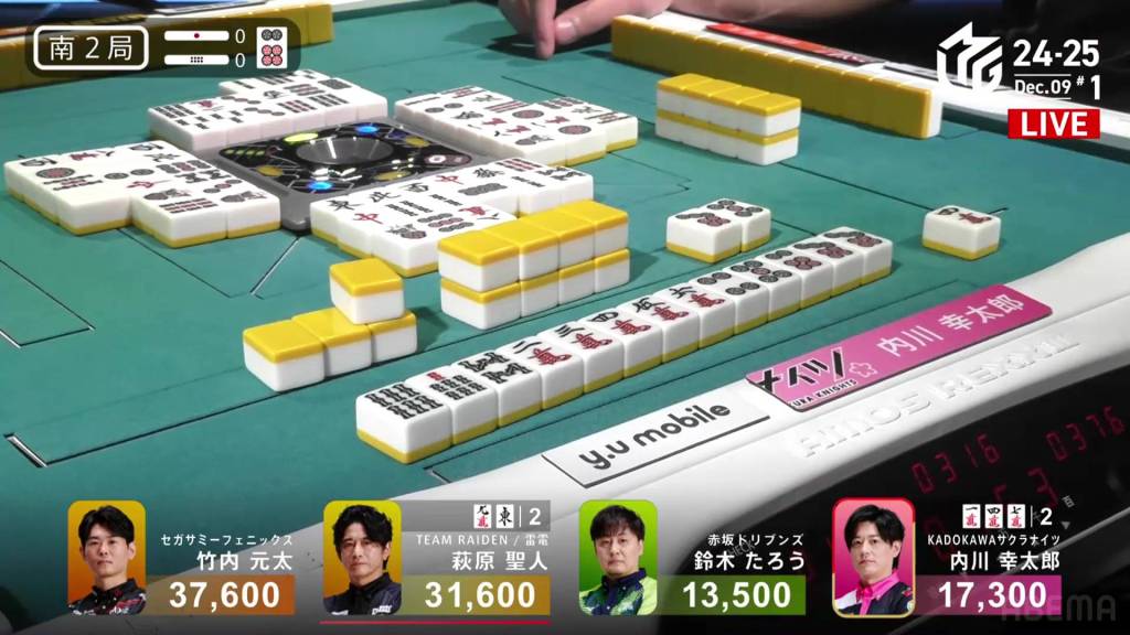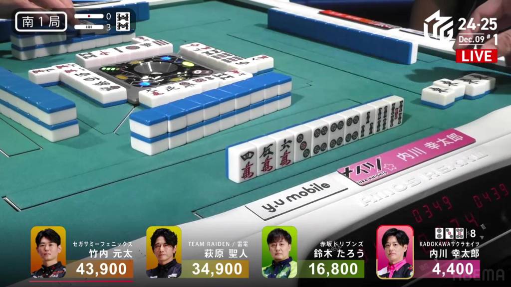 In S4-1, Kayamori is now just 3,200 behind 2nd place Hori. Anything more than 2 han is enough to move up.