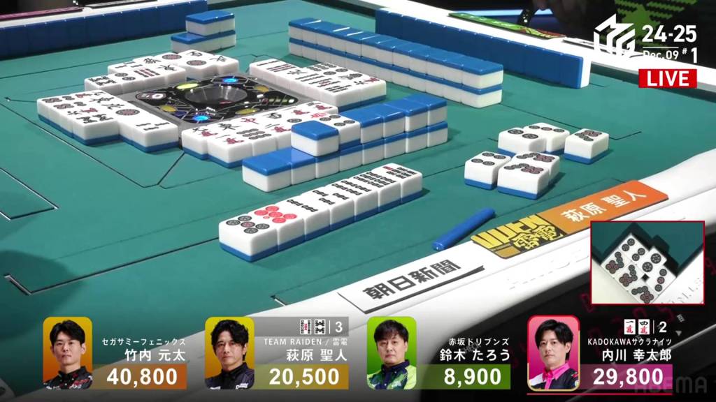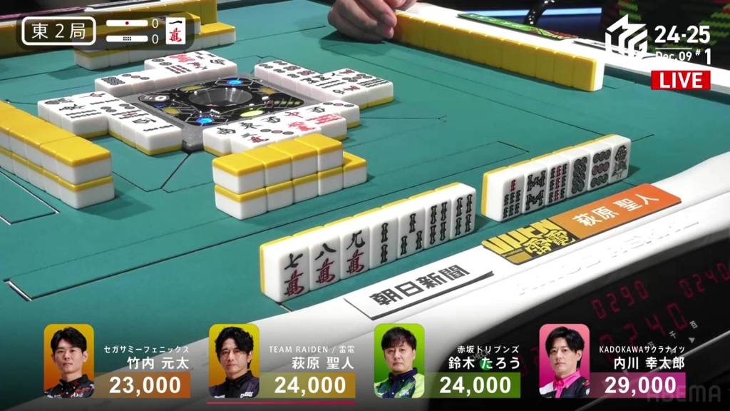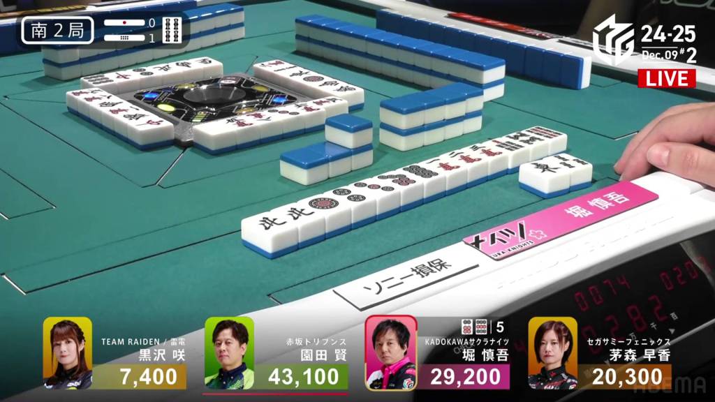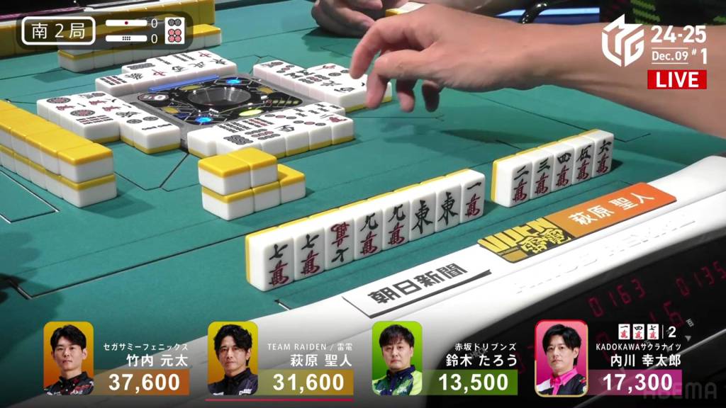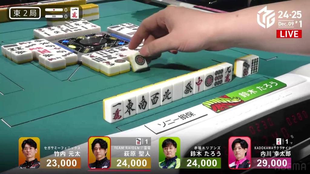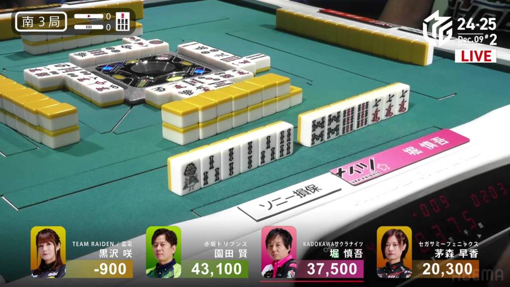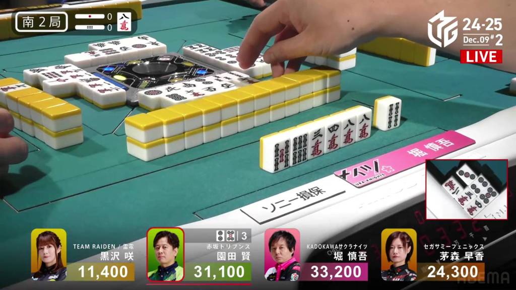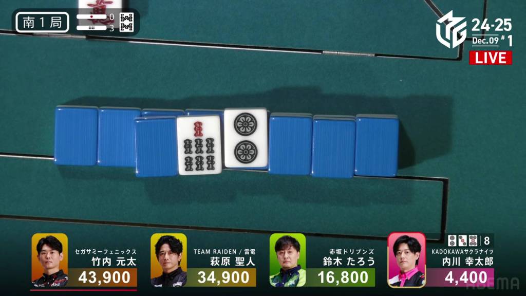 In S4-1, Kayamori is now just 3,200 behind 2nd place Hori. Anything more than 2 han is enough to move up.