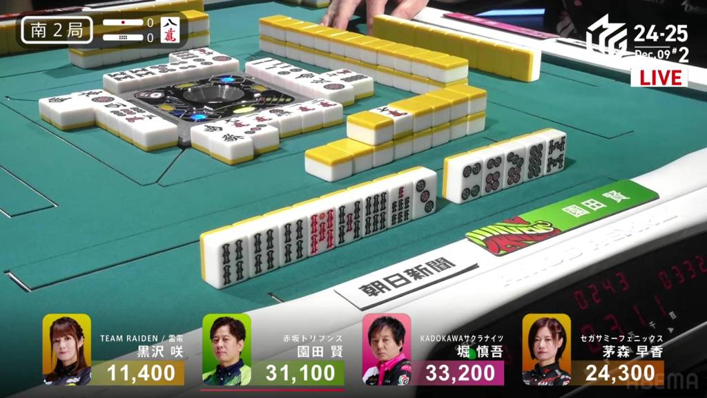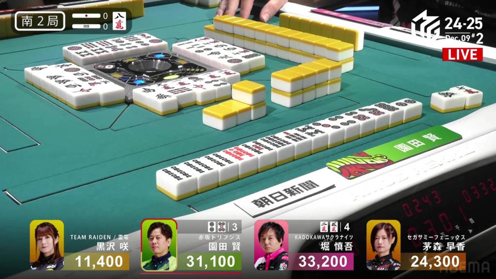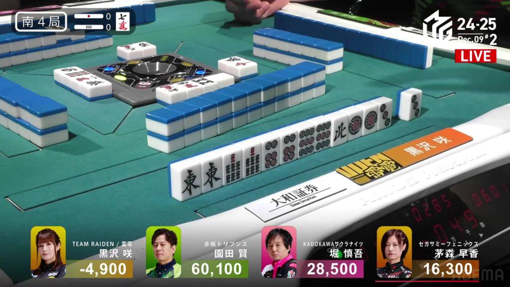 In S4-0, Kayamori is the final dealer and looking to make ground on 2nd place Hori, 12,200 ahead of her.