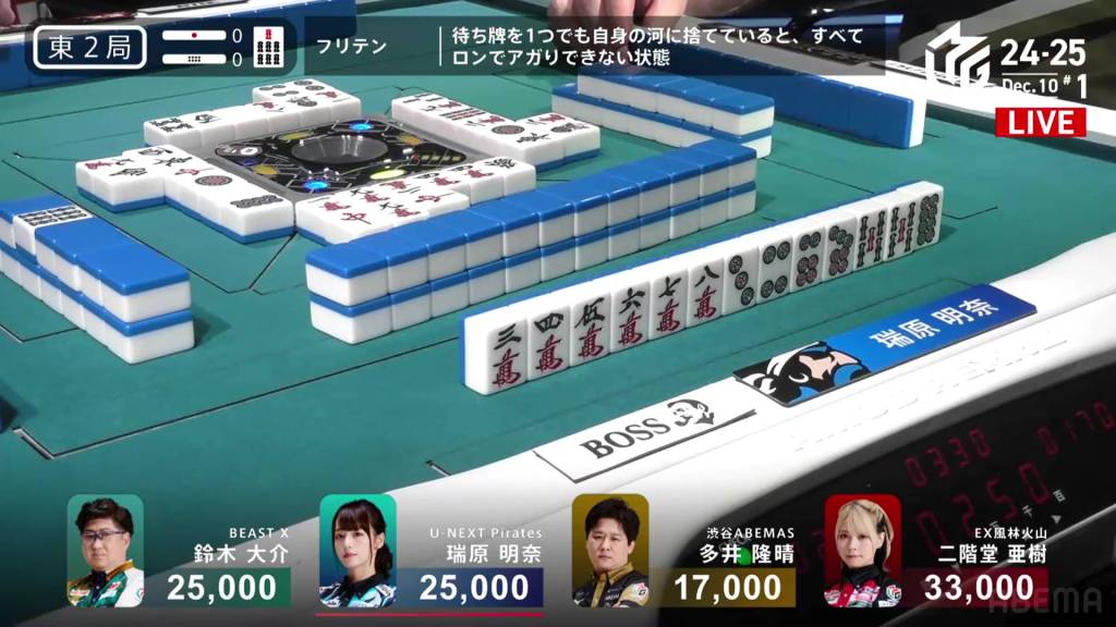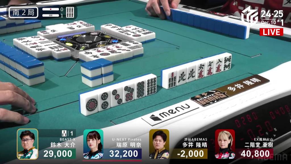 Skipping to S2-1, Mizuhara is now the dealer and 8,600 behind 1st place Aki.