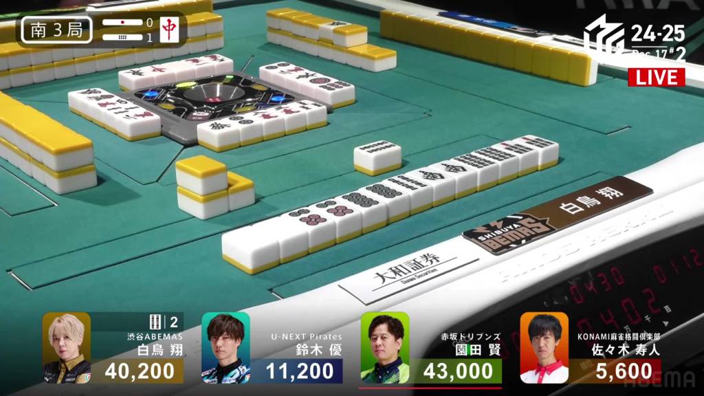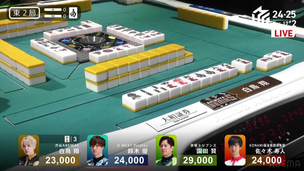 In S3-0, Sonoda is the dealer and sitting 4,900 behind 1st place Shiratori.
