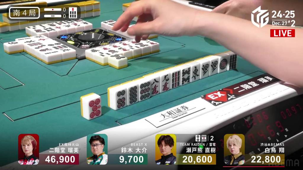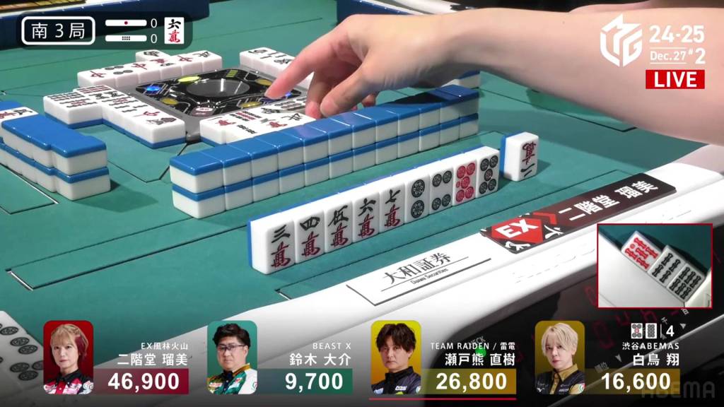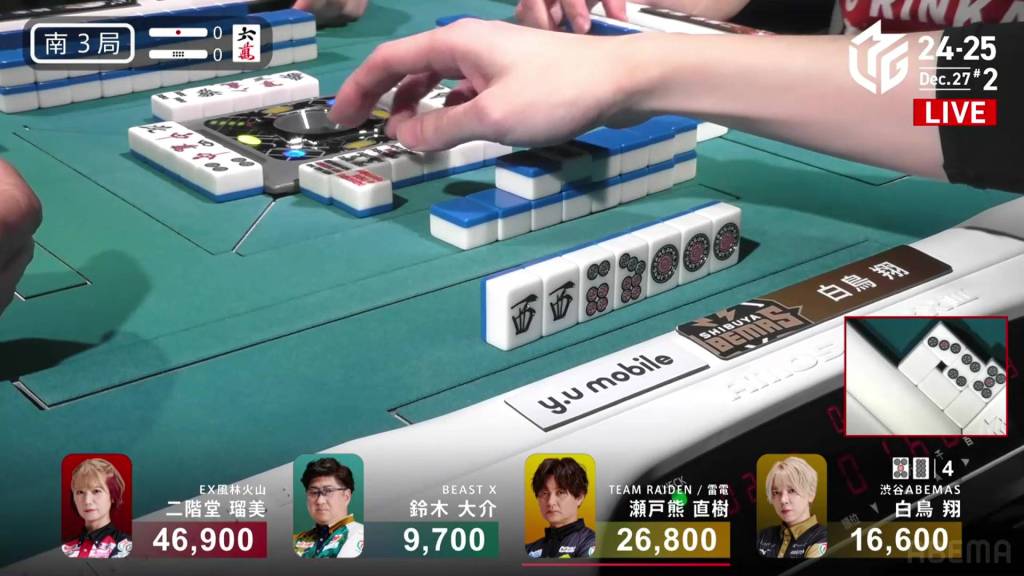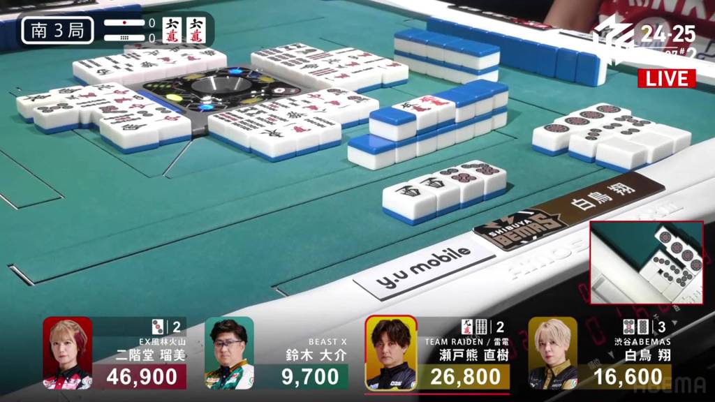 In S3-0, Rumi is the dealer in 2nd place and 4,300 behind Shiratori. With the team in dire straits, Rumi wants to take this game and close the gap on their rivals.