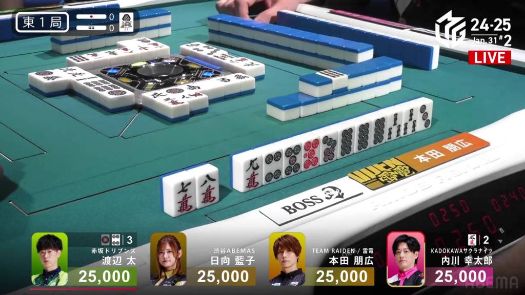 In S3-1, Honda is the dealer in 1st place, holding just a 400 lead over Hinata.