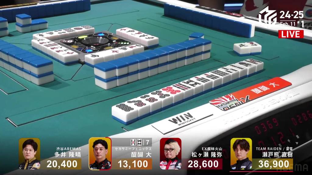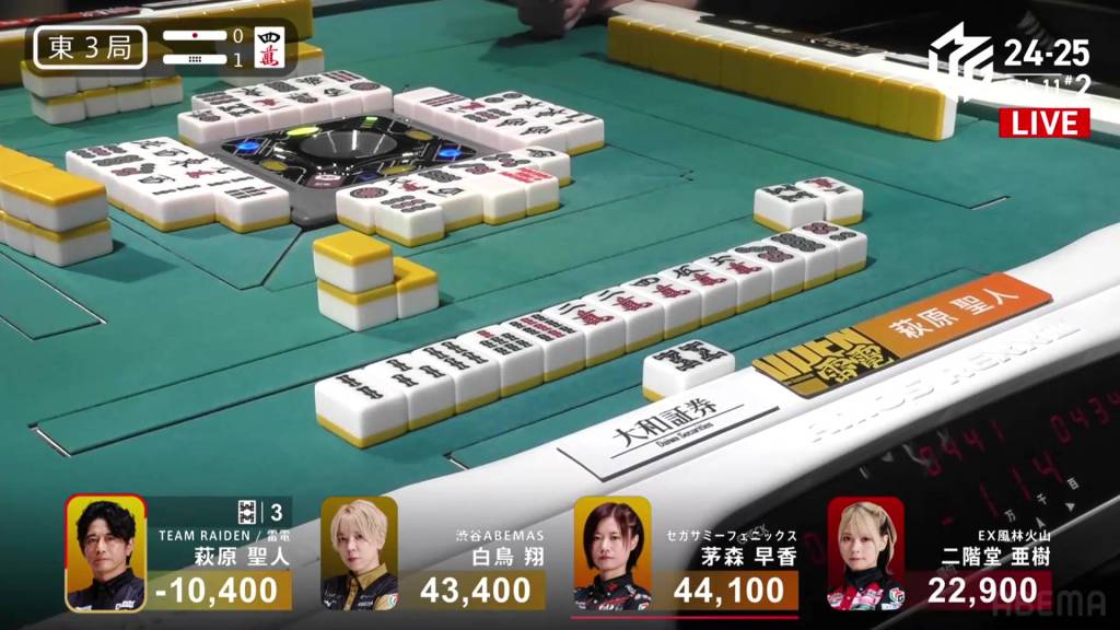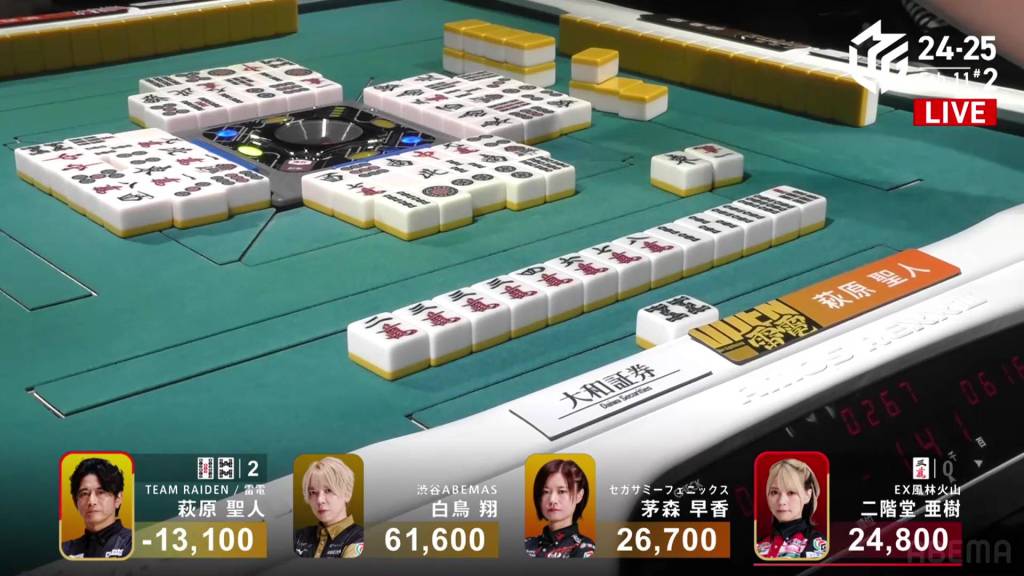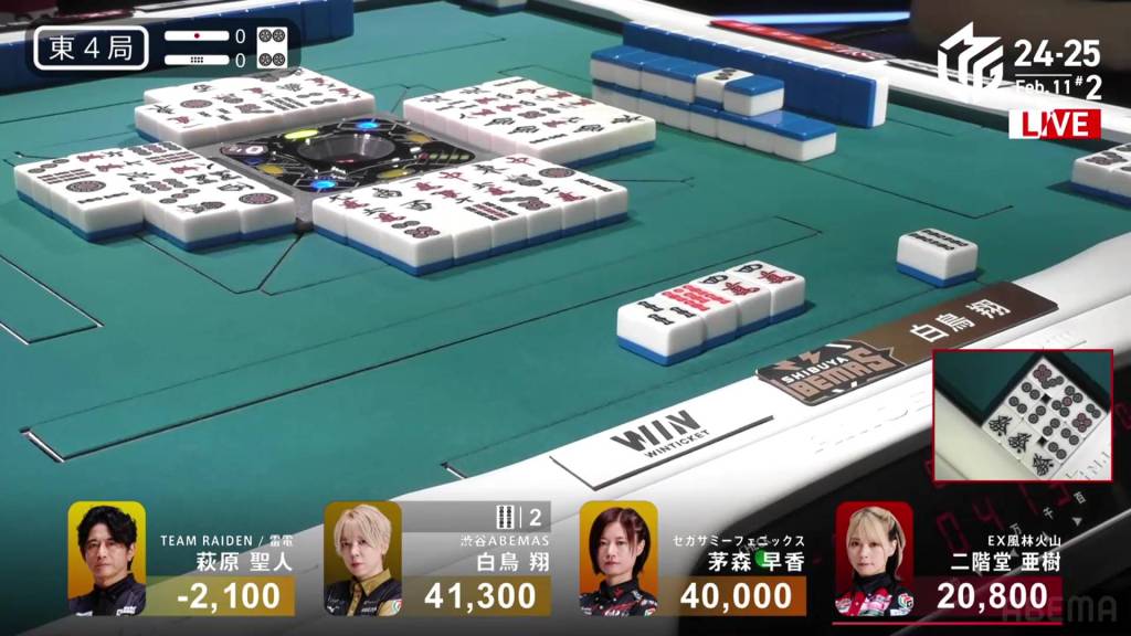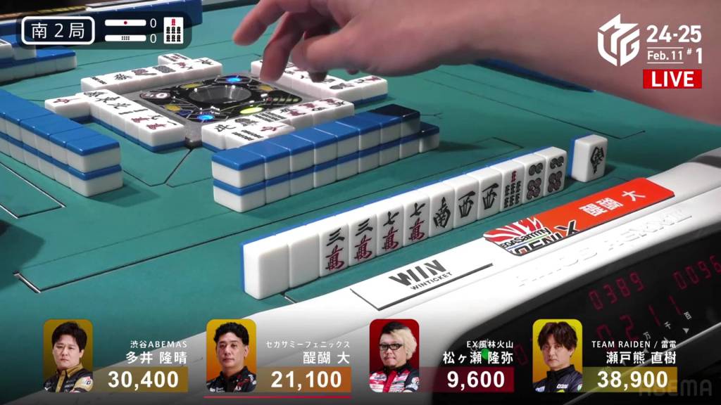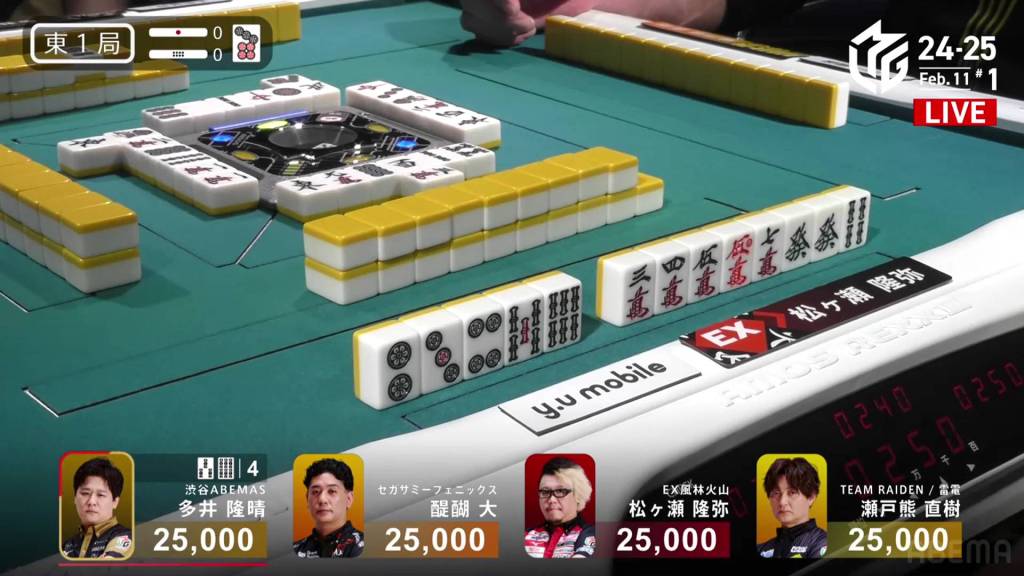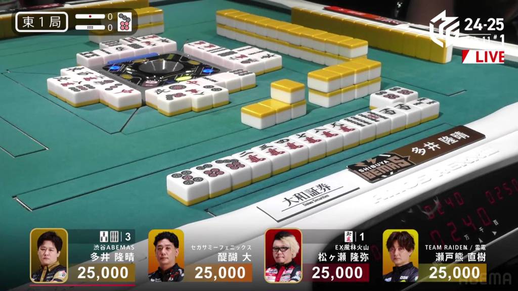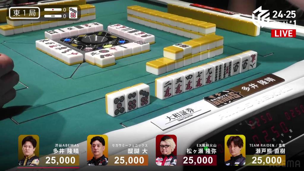 In E1-0, Ooi is the dealer to start the game, trying to continue the Abemas’ good fortunes.