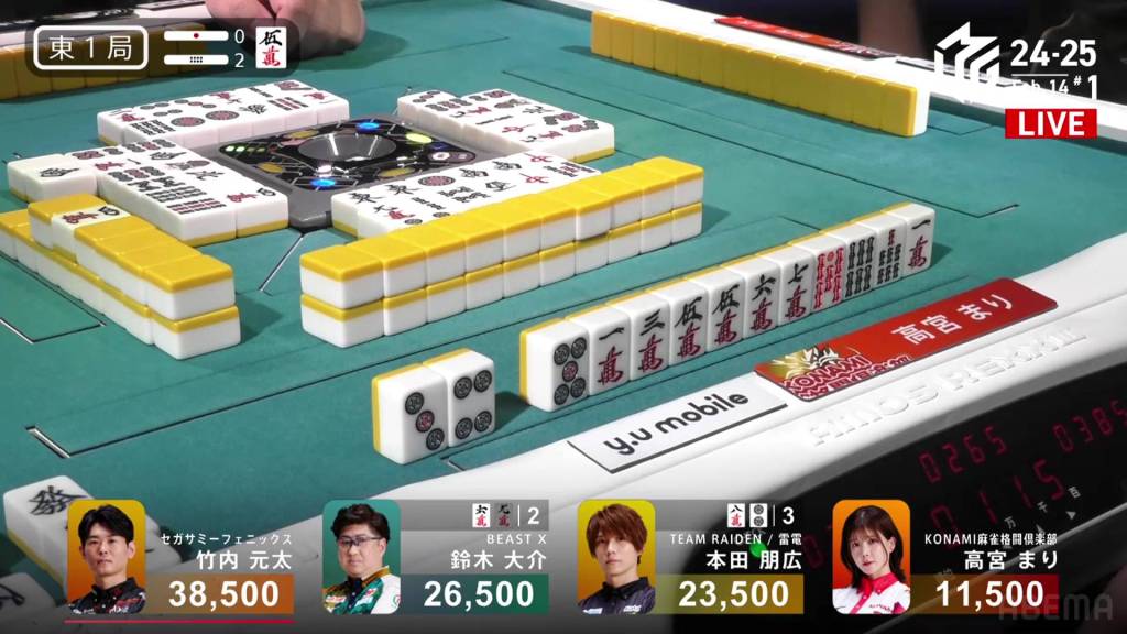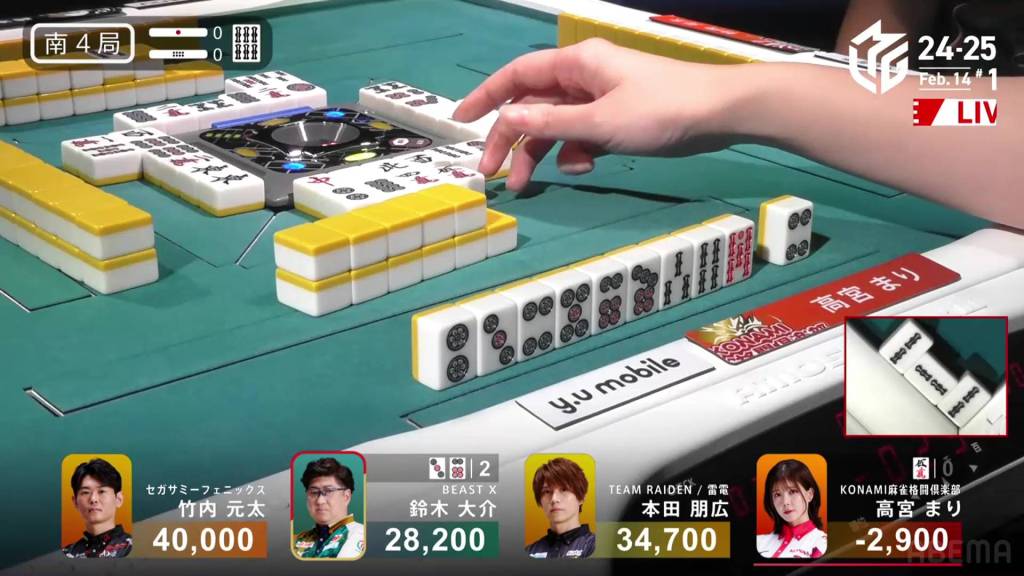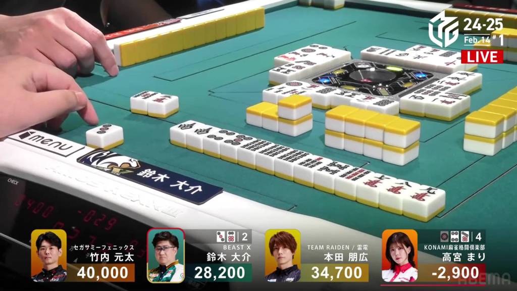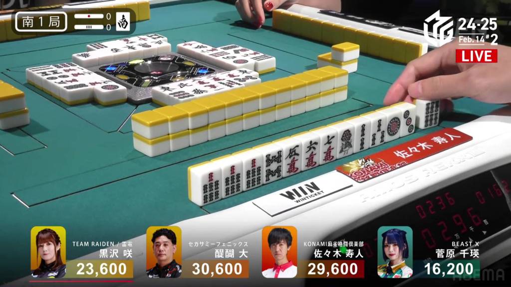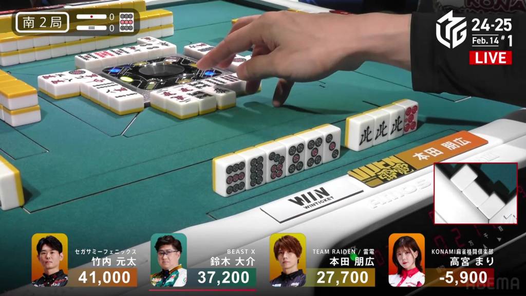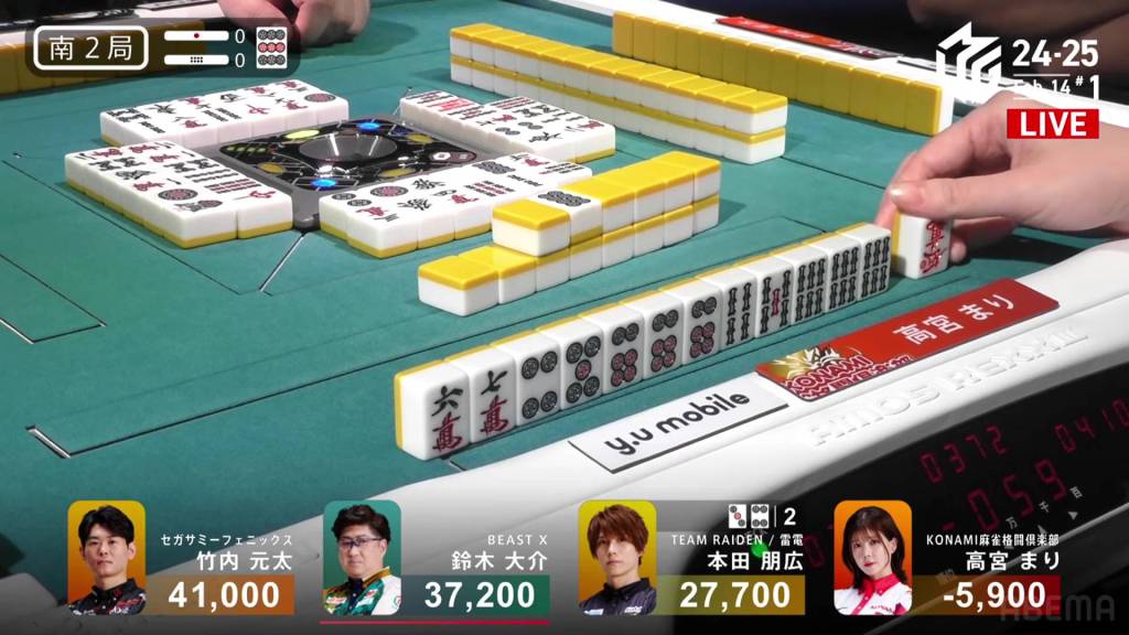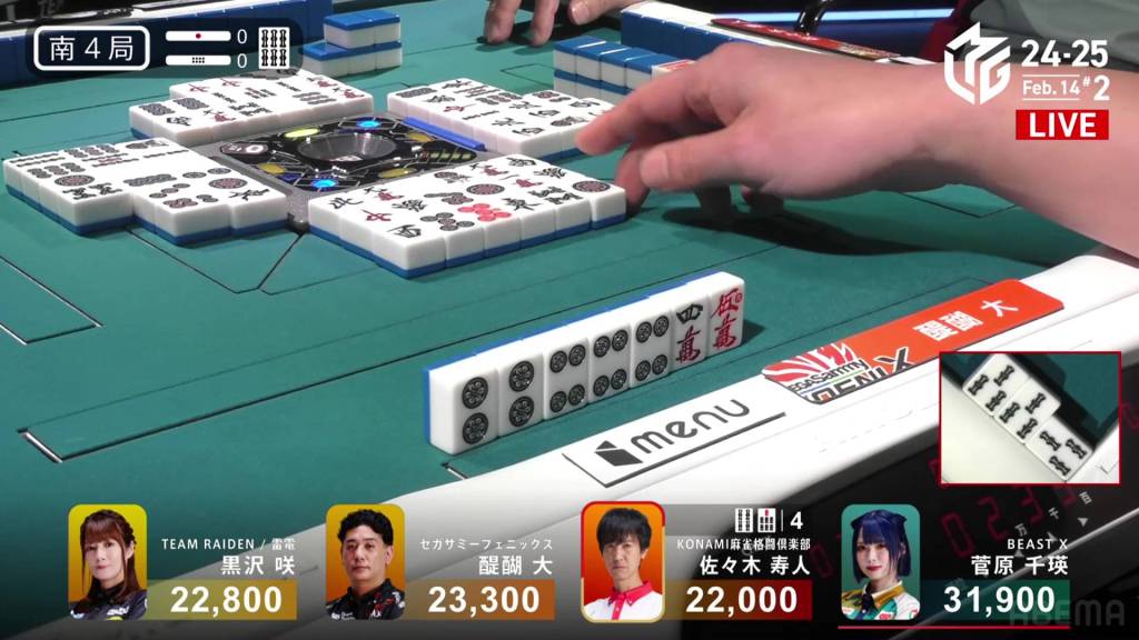 In S2-0, Sugawara is now just 3,400 from 1st place. A 3-han hand will move her up.
