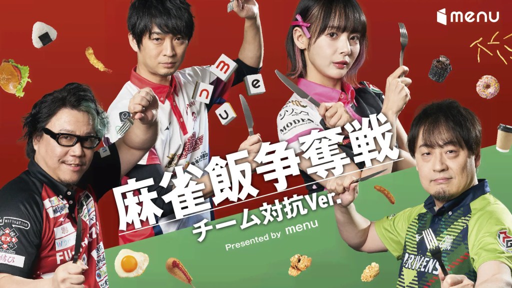 On March 29 at 17:00 JST, the Mahjong Food Competition: Team ver. (麻雀飯争奪戦チーム対抗Ver.) presented by menu delivery will be broadcast on the ABEMA Mahjong Channel.