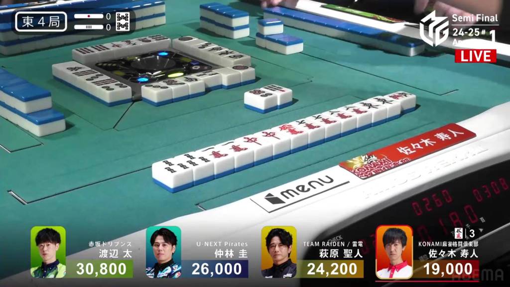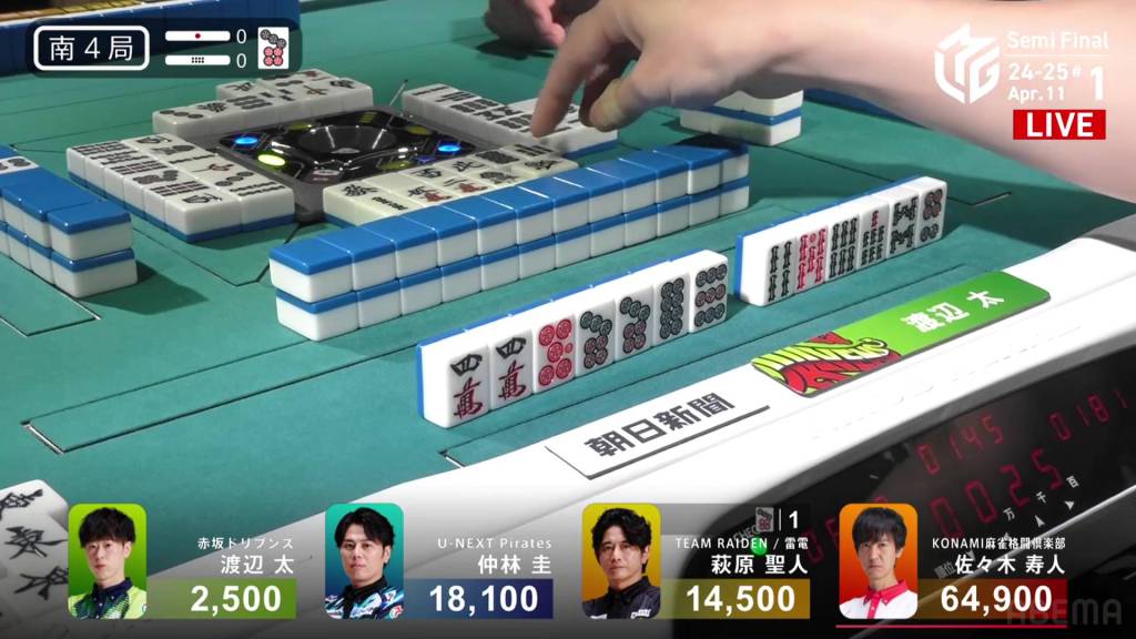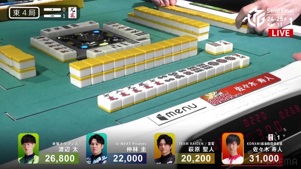 In E4-0, Hisato is the dealer in 4th place, but he is just a dealer mangan away from moving into 1st place.