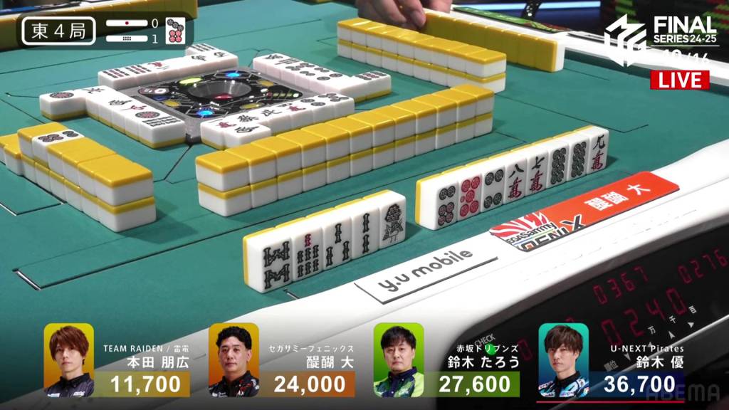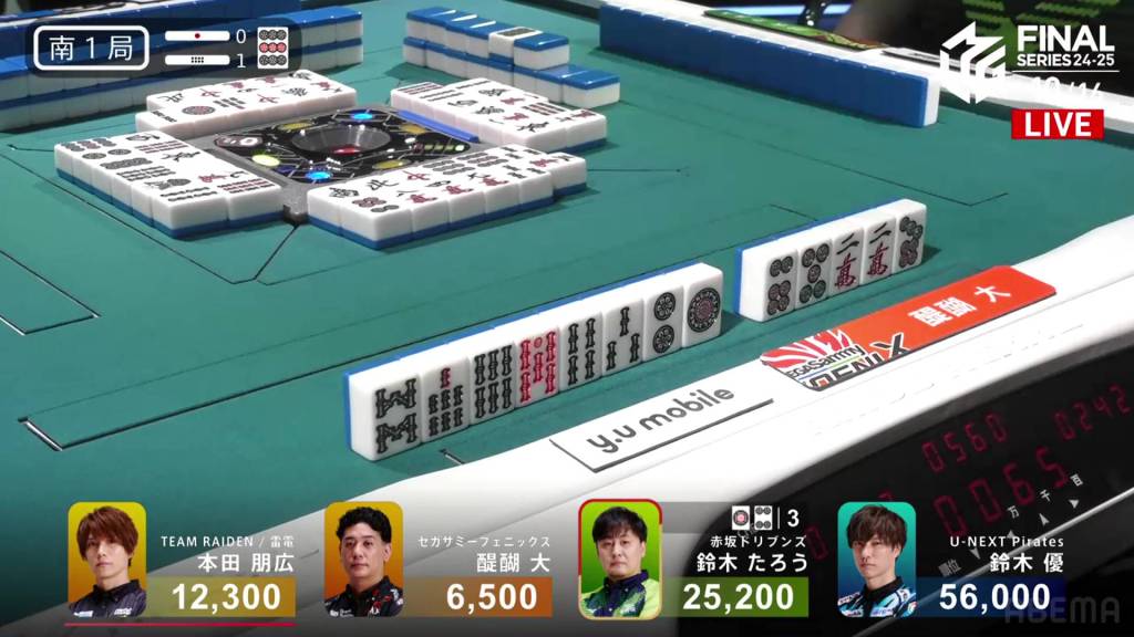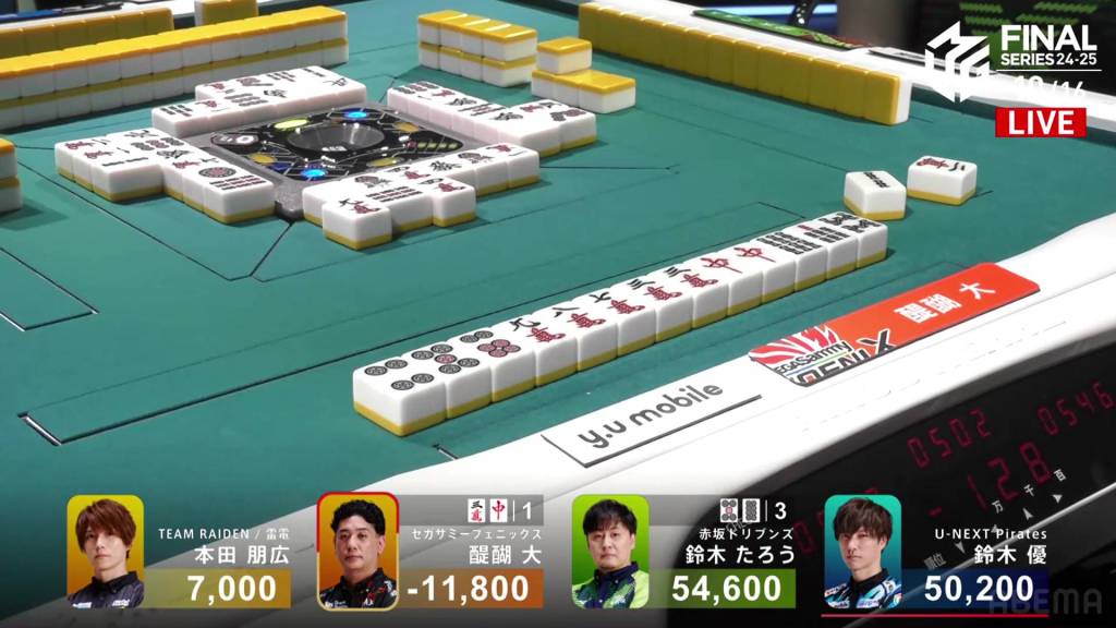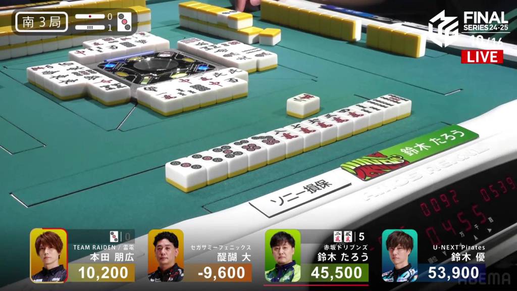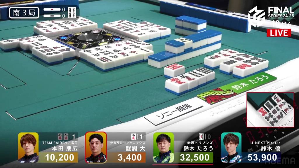 In S3-2, Yu is 17,200 after dealing into Taro’s dealer mangan. After being holding such a big lead so early on, Yu wants to return to the top and get the team’s second win of the finals.