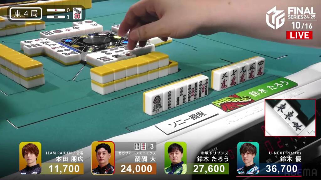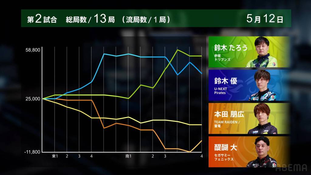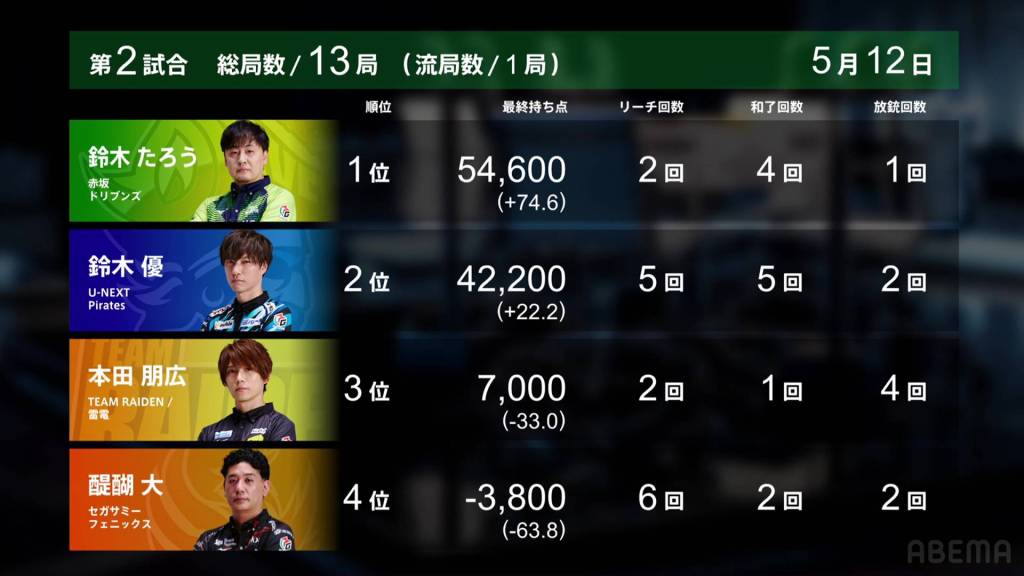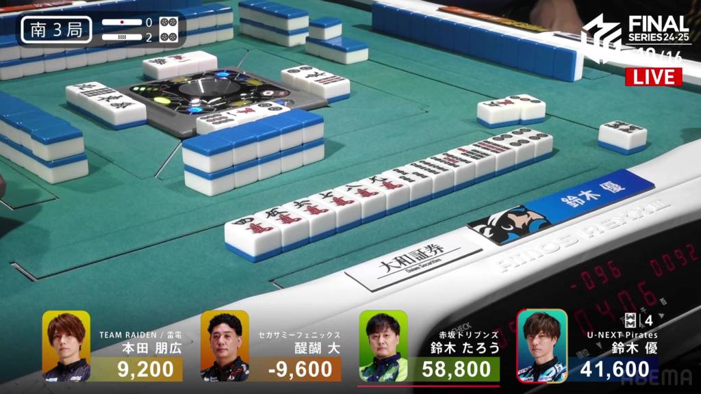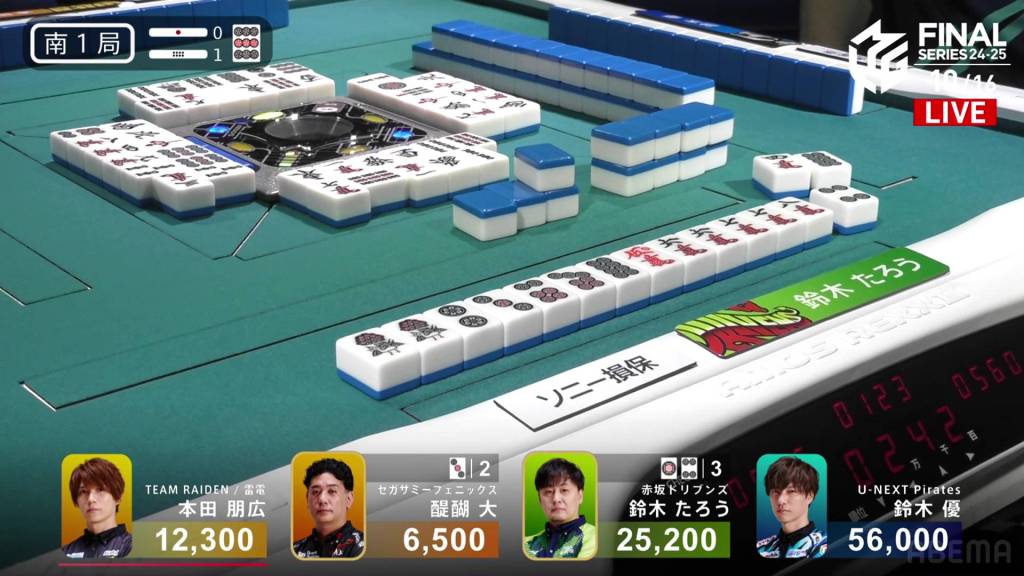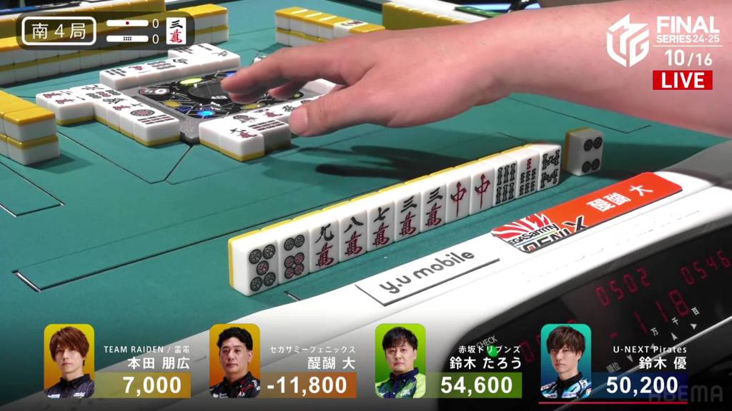 In S3-2, Yu is 17,200 after dealing into Taro’s dealer mangan. After being holding such a big lead so early on, Yu wants to return to the top and get the team’s second win of the finals.