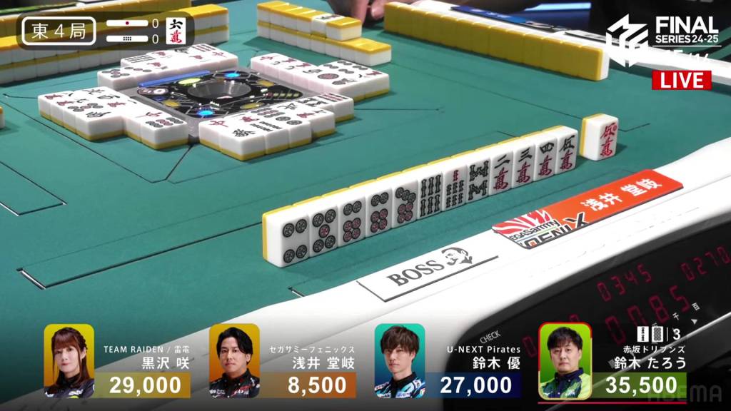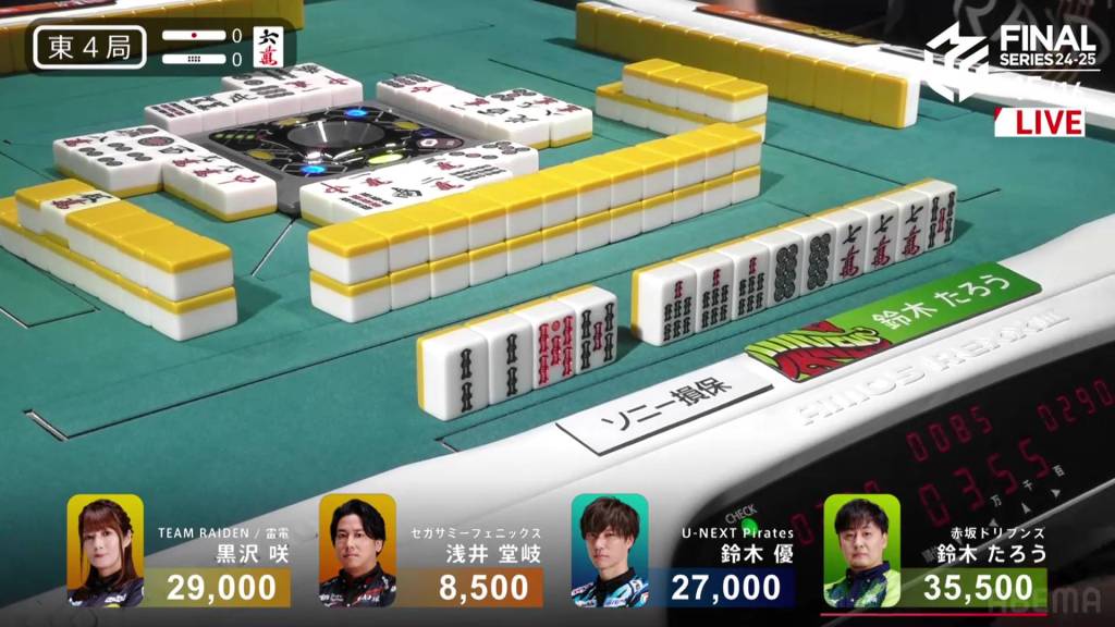 In E4-0, Taro is the dealer in 1st place while Takaki is low in 4th place. Though it’s good progress, Taro still wants more for a more secure 1st place.