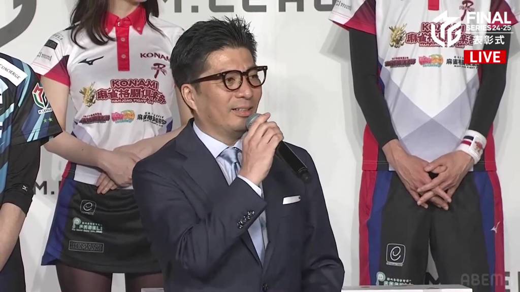 After the speeches, the four of them stepped aside and Fujita-chairman gave one more speech. He congratulated the Sega Sammy Phoenix on their first-ever championship and officially closed the M-League 2024-25 season.