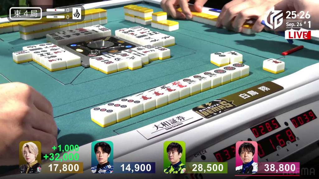 In E4-1, Uchikawa is the dealer and 2,200 behind 1st place Daigo.