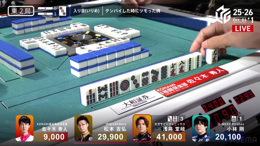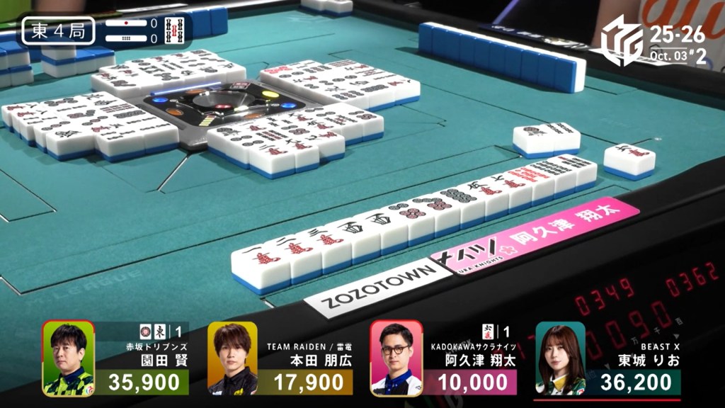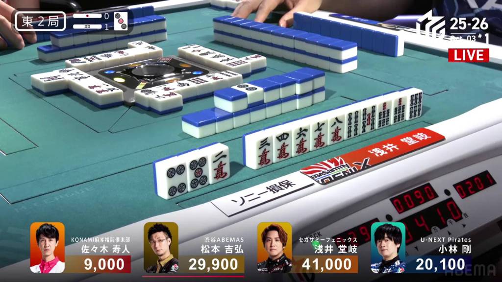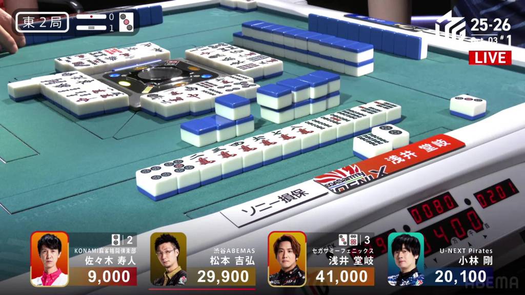 In E2-0, Asami is the dealer with a slim 3,900 lead over the 2nd place tie.