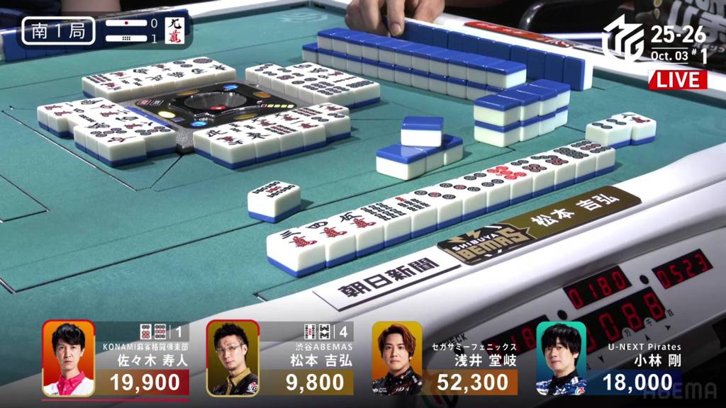 In S1-1, Matsumoto is in 4th place, 8,200 behind 3rd place Kobayashi and 10,100 behind 2nd place dealer Sasaki.