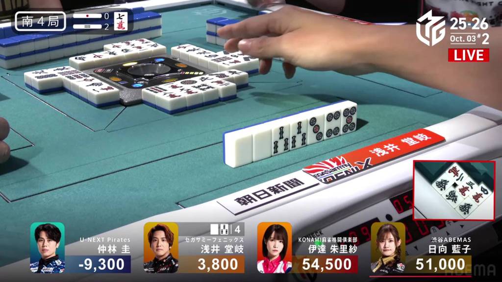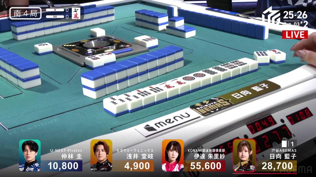 In S4-2, Hinata has made quite a lot of progress, now just 3,500 from 1st place. Even a 2-han hand can put her in a tie for 1st place.