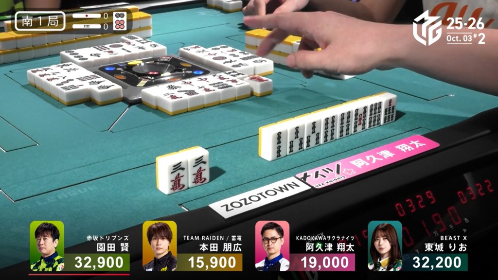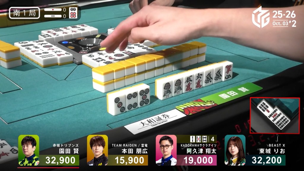 In S1-0, Tojo is in 2nd place and 700 behind dealer Sonoda. Any hand is enough to move ahead.