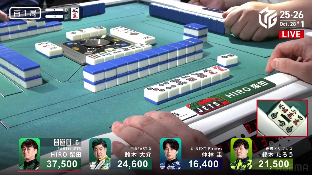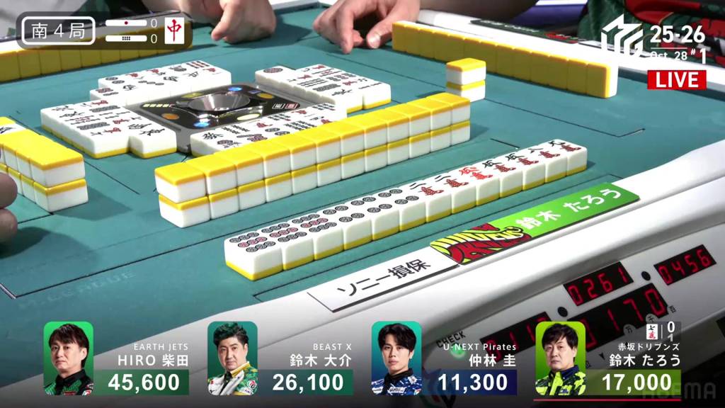 In S1-2, Shibata is the dealer in 1st place and has a 12,900 lead over 2nd place Daisuke.