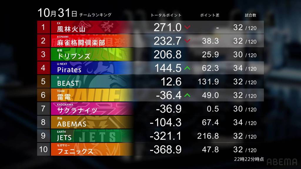 And that’s all for this week. October finishes and November begins. Can the Beast X continue to climb? Can Team Raiden regain their electric energy? How many more yakuman will we have this season? As always, we’ll just have to wait and see.