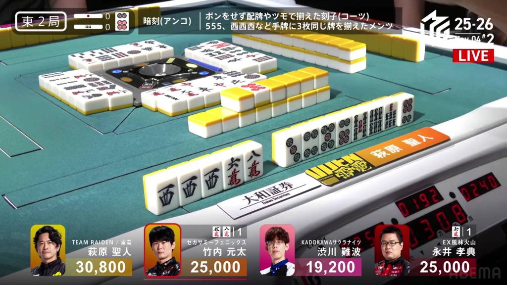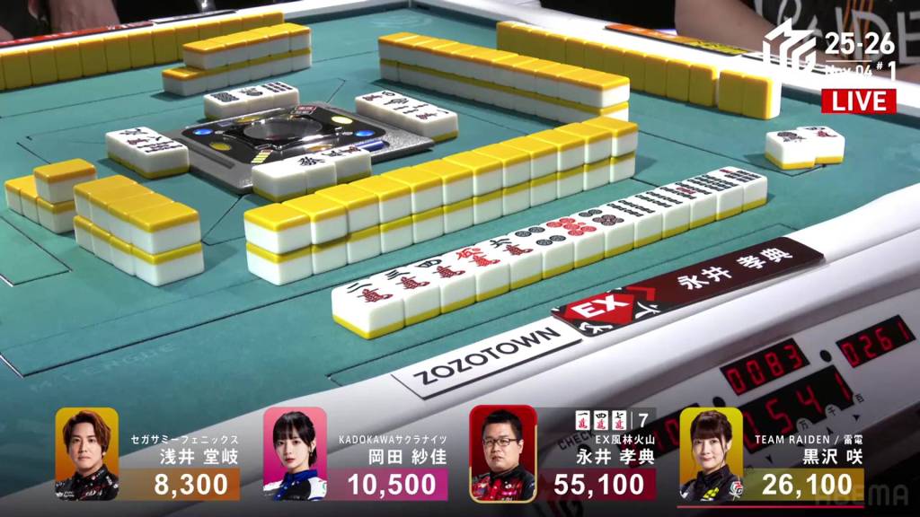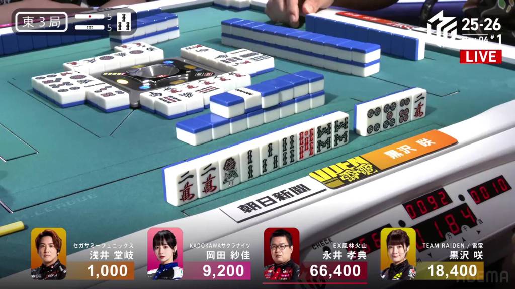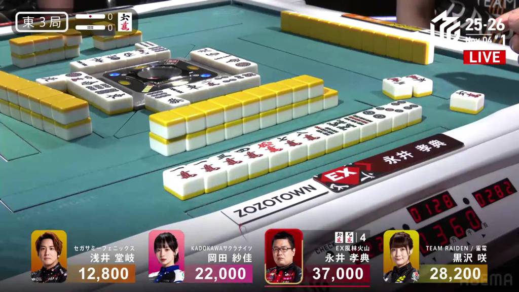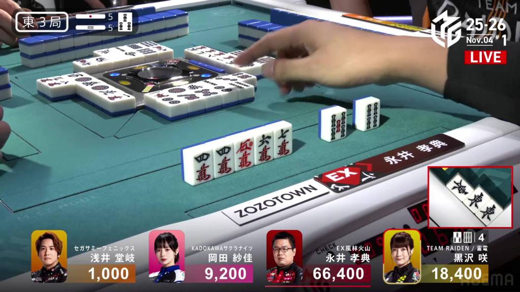 In E3-5, the stakes are high and the sticks are high. Whoever wins the next hand will be guaranteed to get 6,500 in bonuses. Sitting in 2nd place is Kurosawa, wanting to widen her lead over the bottom two.