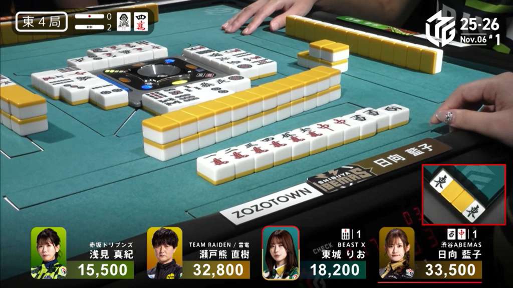 In E4-2, Hinata is the dealer in 1st place, but her lead is only a tiny 700.