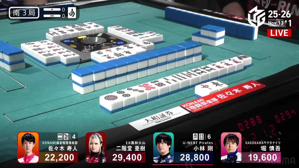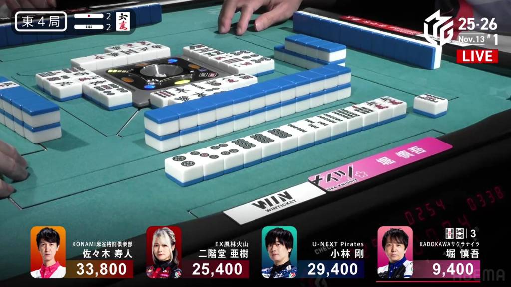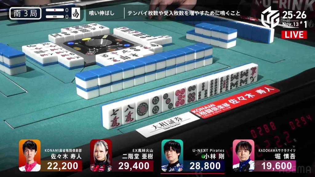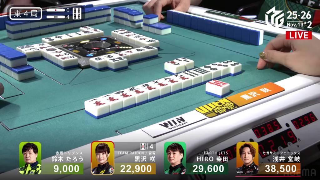 In S1-4, Aki is in 4th place, but is just 8,400 behind 1st place dealer Hisato. The next winner will get 2,200 in bonus sticks, making Aki’s job a little easier.