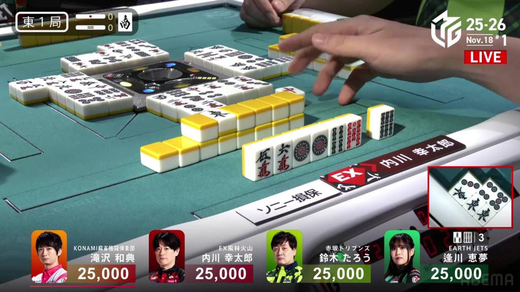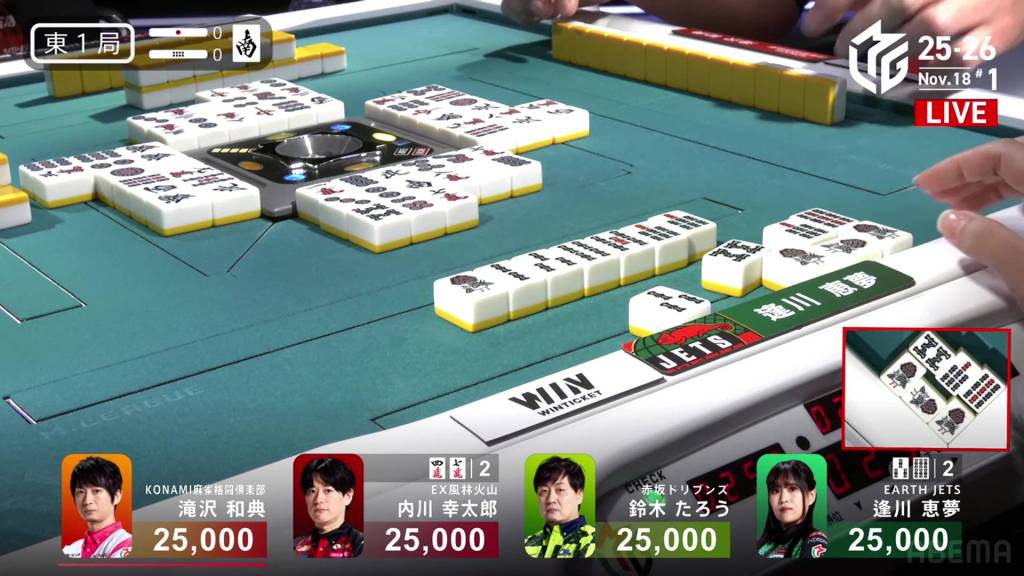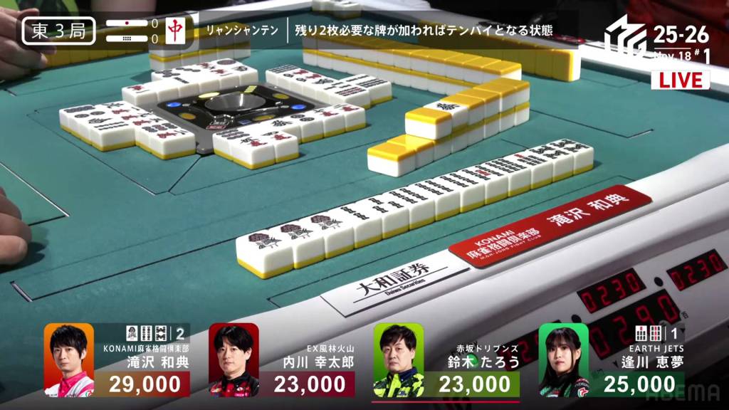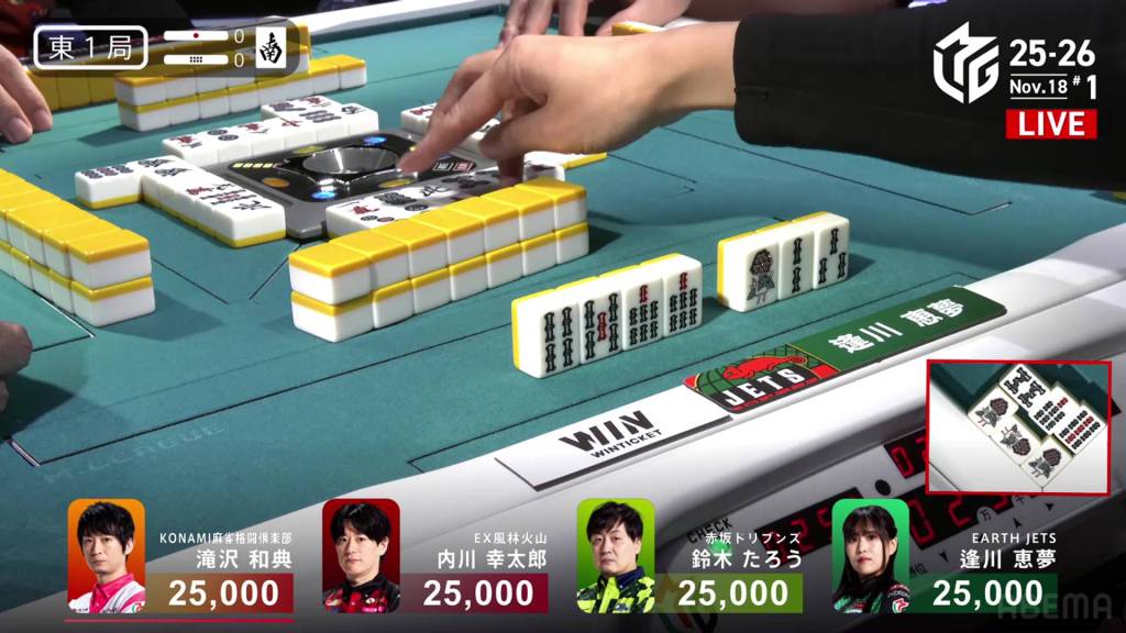 Uchikawa’s hope is short-lived as Aikawa draws the 3s within the go-around and wins the hand. Aikawa wins with Chinitsu for 2,000/4,000.