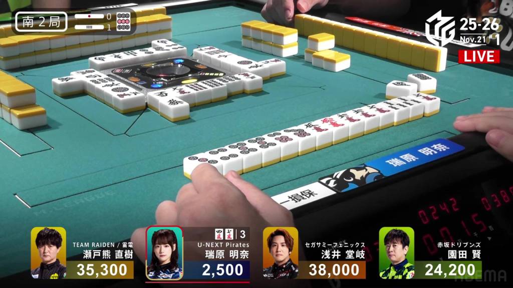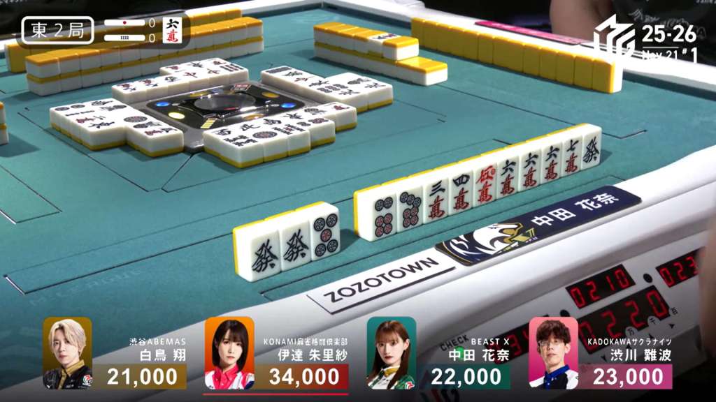 In S2-1, Mizuhara is the dealer and deep in 4th place. A gap of 21,900 separates her from 3rd place Sonoda.