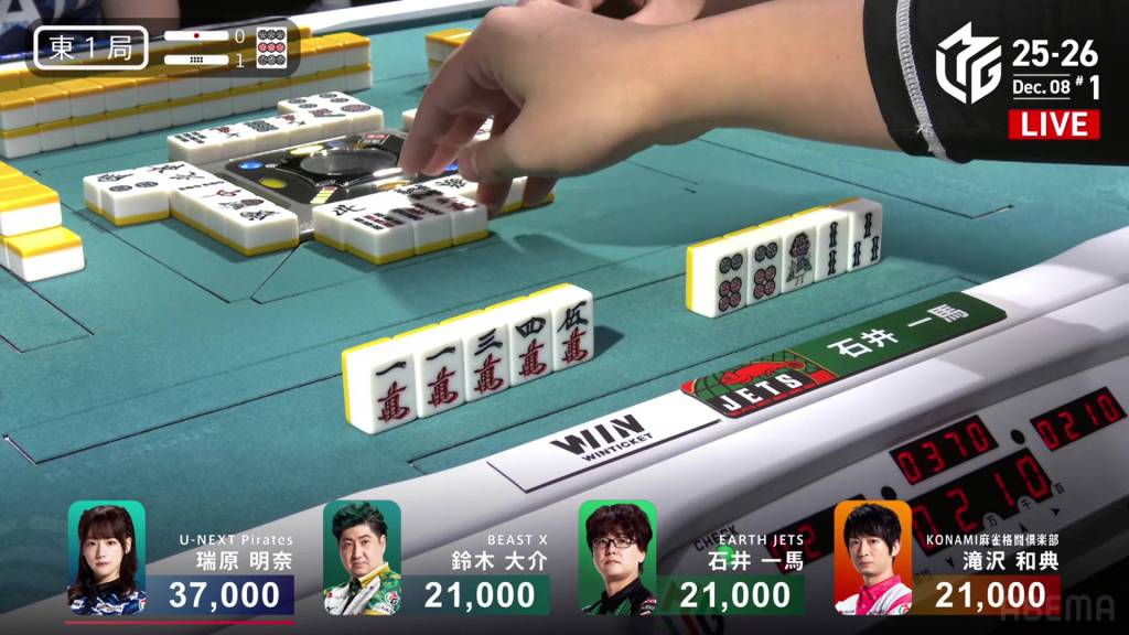 In S1-1, Nakabayashi is in 2nd place and is 13,300 behind 1st place dealer Tojo.