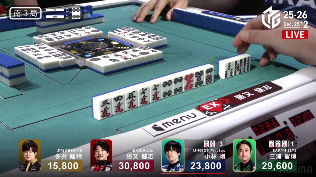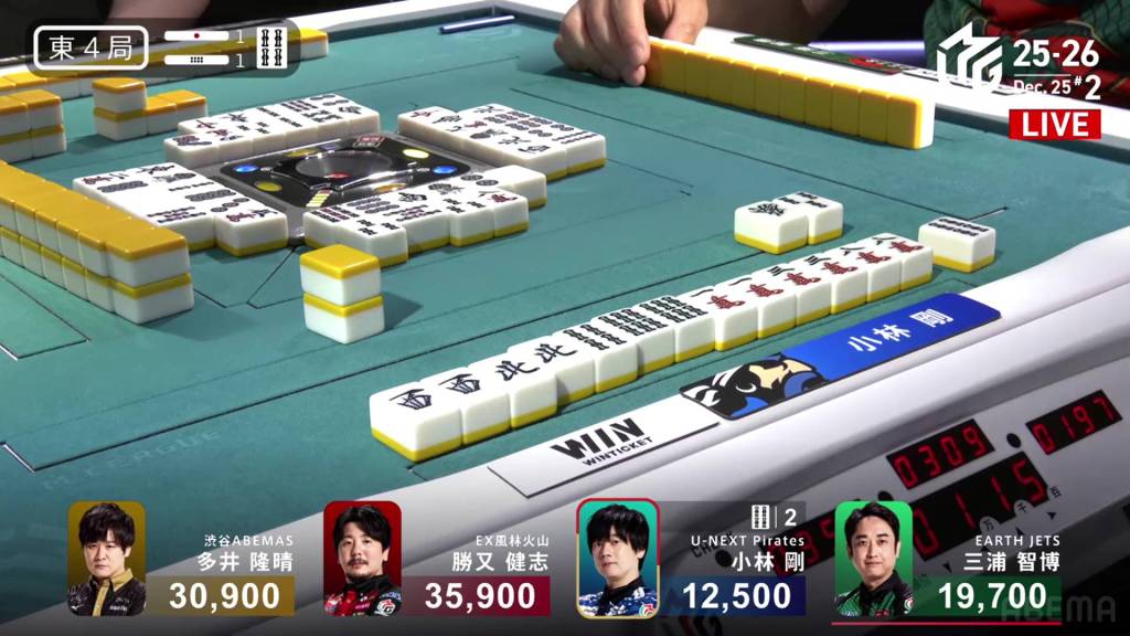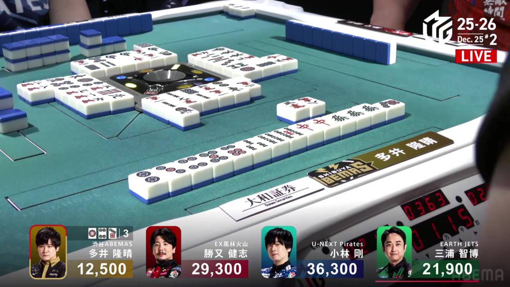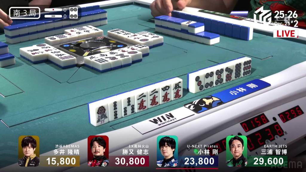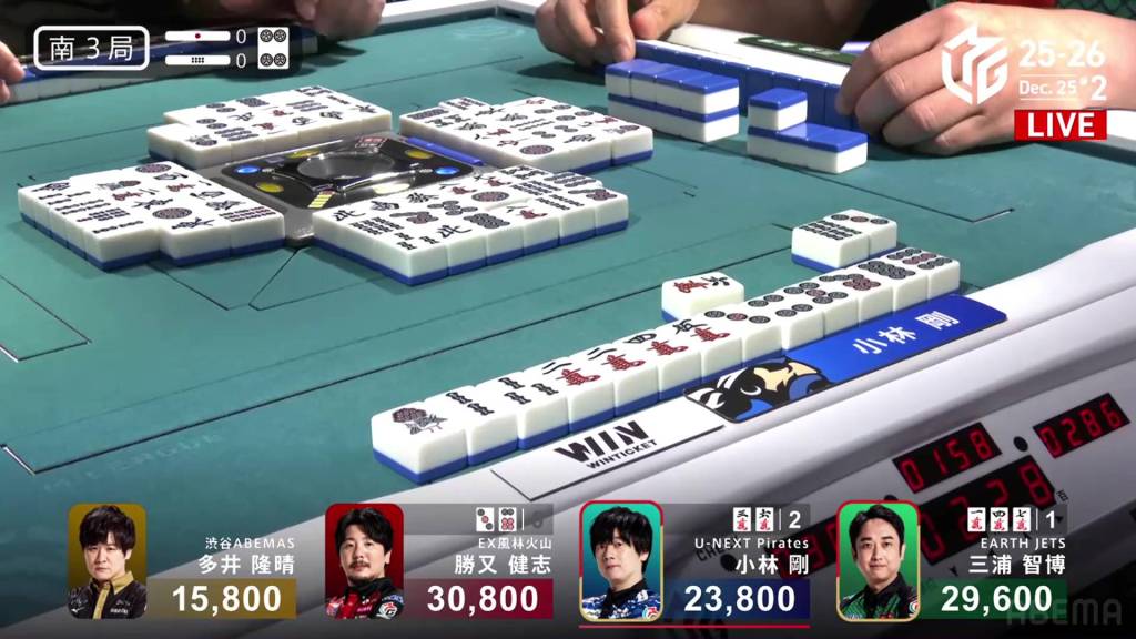 Jumping to S3-0, Kobayashi is now the dealer in 3rd place, 5,800 behind 2nd place Miura and 7,000 behind 1st place Katsumata.