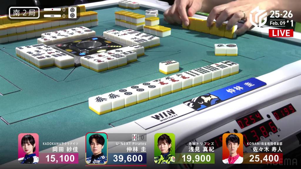 In S2-0, Nakabayashi is the dealer in 1st place, winning a mangan the previous hand to make space.