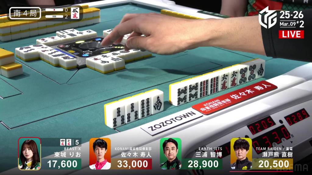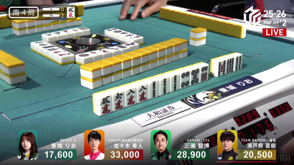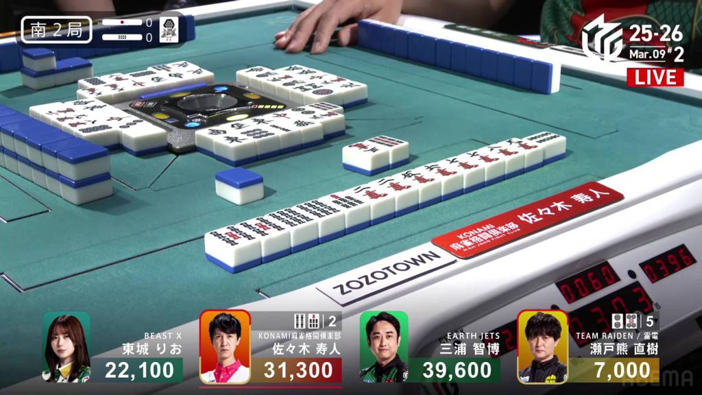 In S2-0, Hisato is now the dealer and 8,300 behind 1st place Miura.