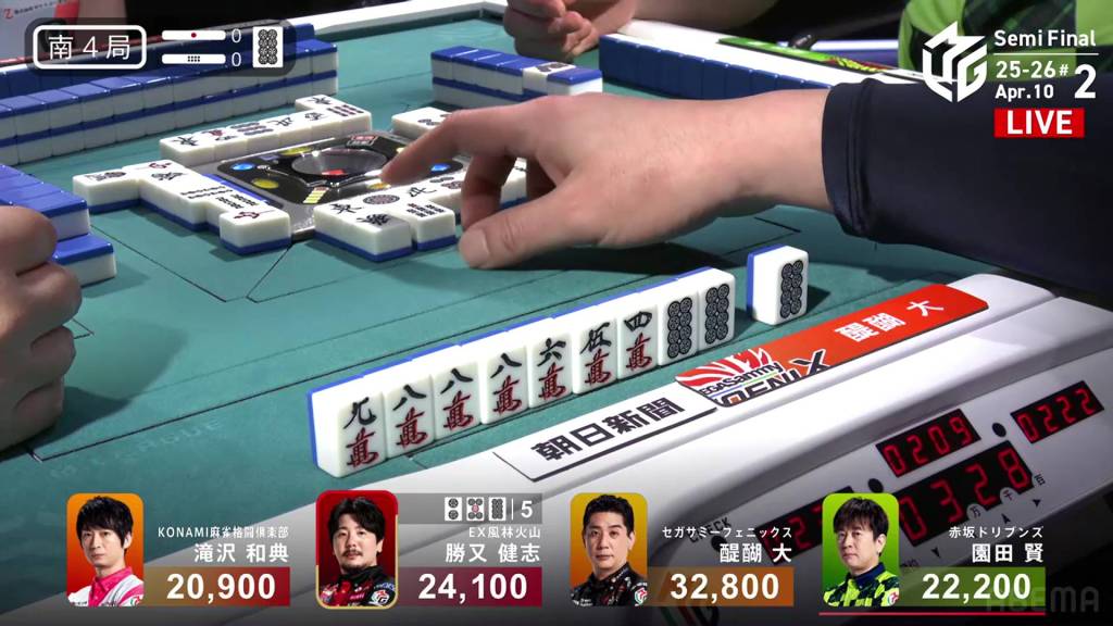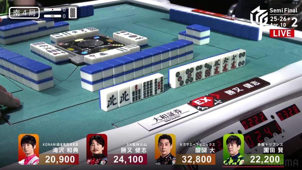 In S4-0, Katsumata is now 8,700 behind 1st place Daigo. To take 1st place, Katsumata needs a 3/40 direct hit, a mangan tsumo or a haneman ron.