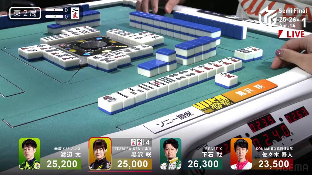 In E2-0, Kurosawa is the dealer in 3rd place and is just 1,300 from the lead.