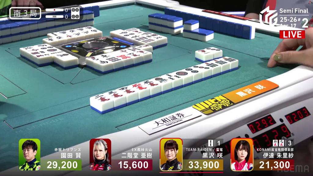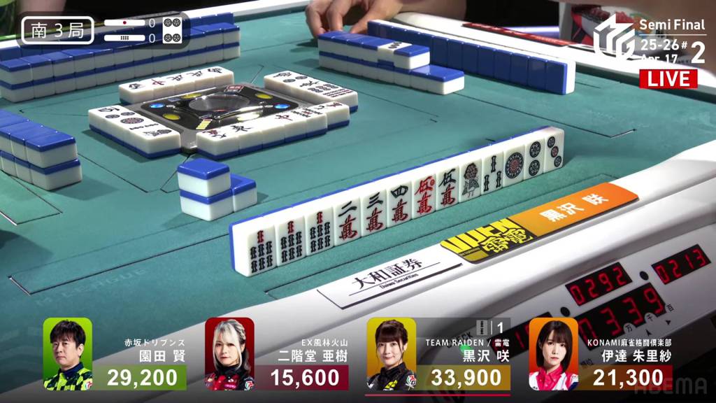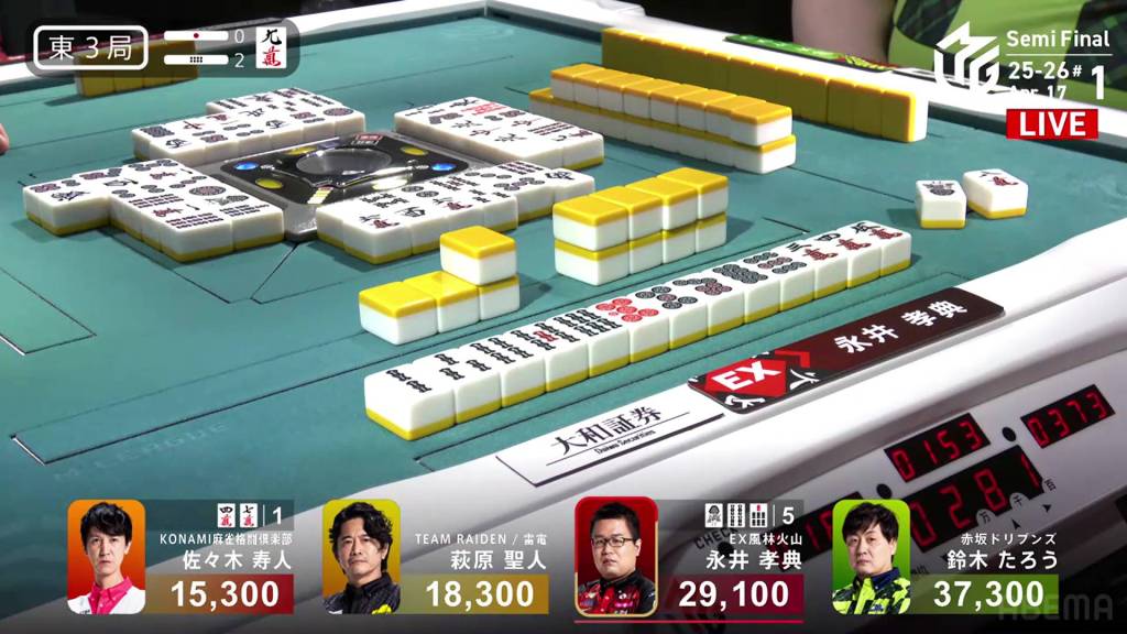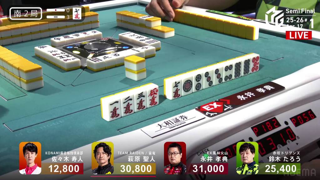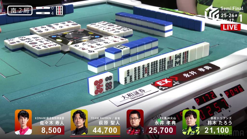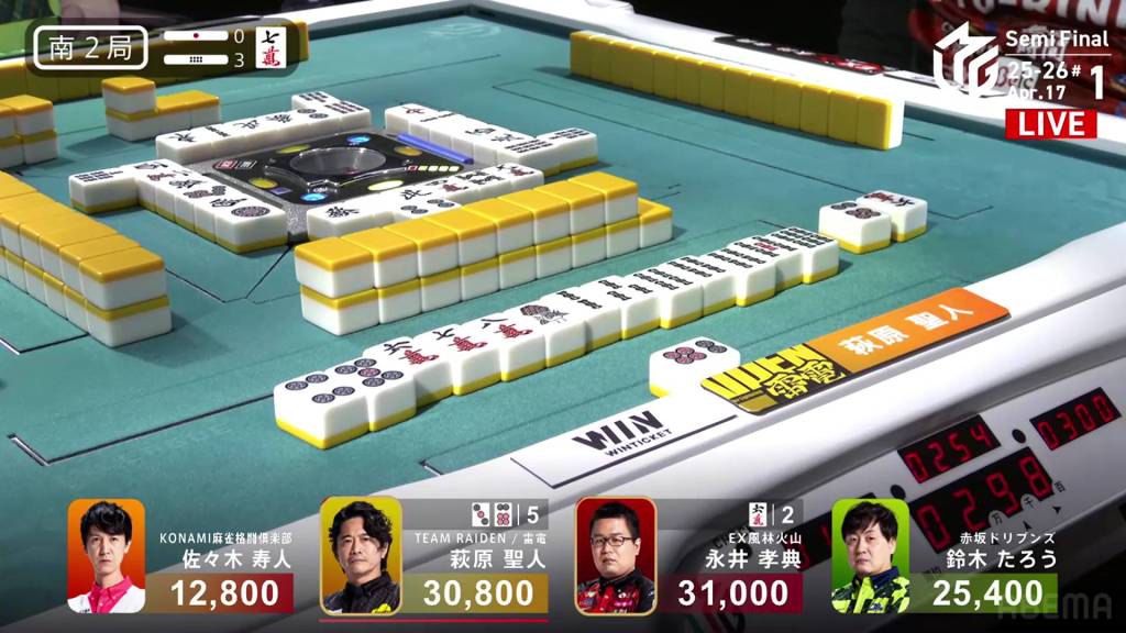 In S2-3, Hagiwara is the dealer in 2nd place, trailing Nagai by only 200.